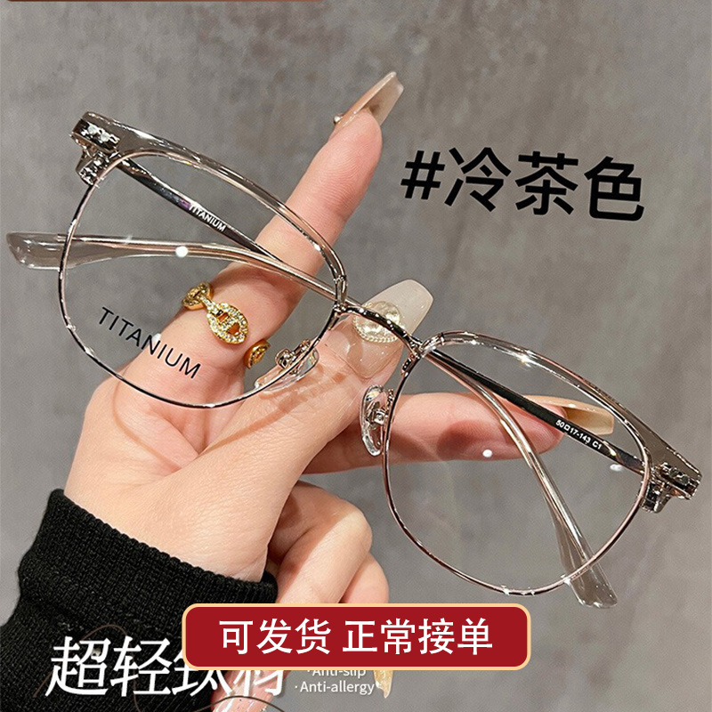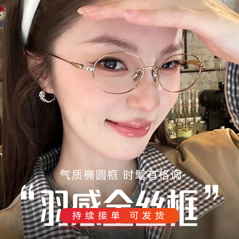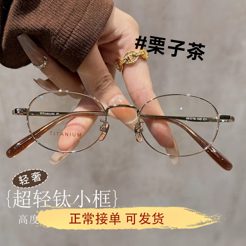 超轻7g纯钛金丝小框眼镜女近视可配度数防蓝光高级感小椭圆眼睛框