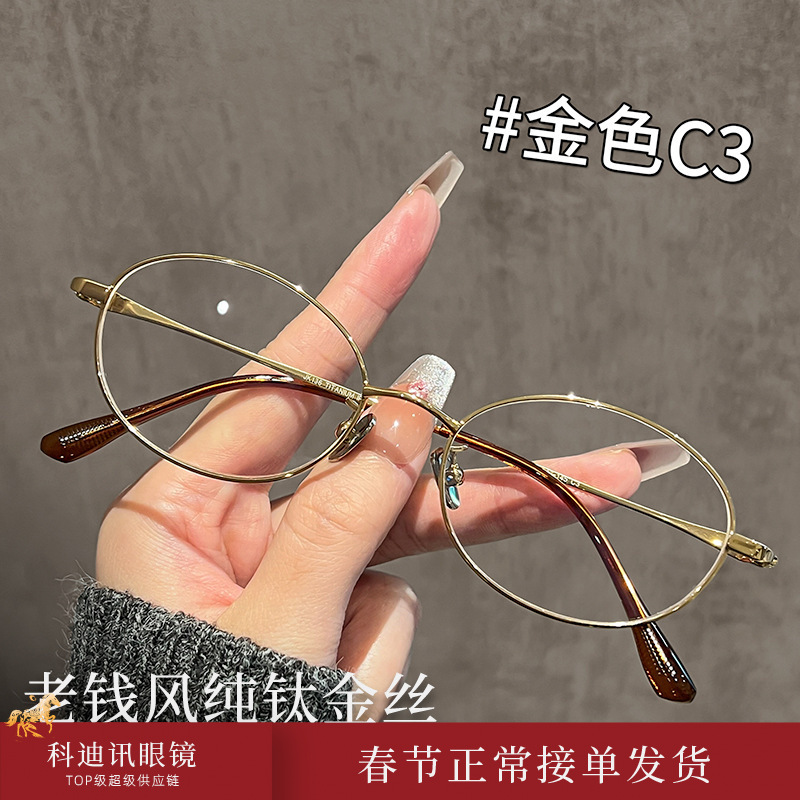 复古老钱风金丝眼镜防蓝光女近视镜椭圆眼镜框08165超轻钛架镜架