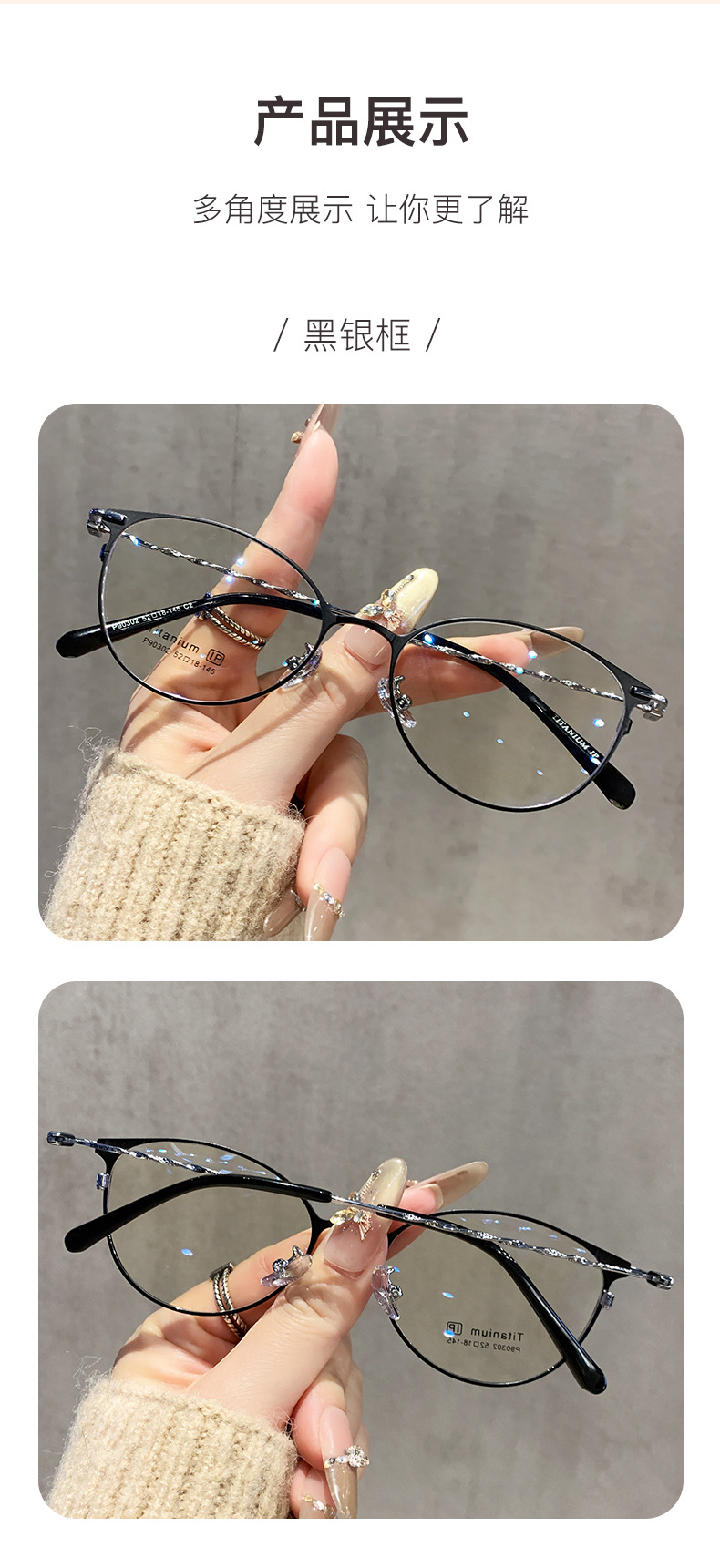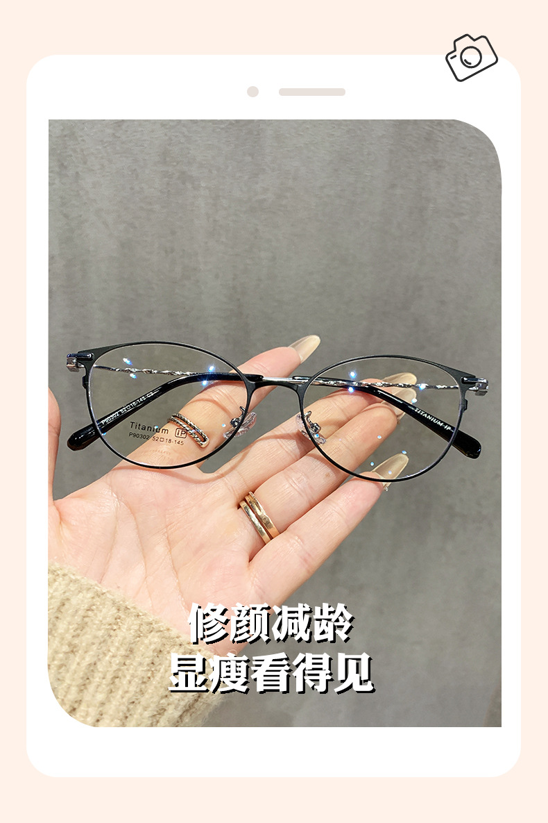 超軽量純チタン猫眼眼鏡女性は度数近視の細い枠の高級感を配合することができます。