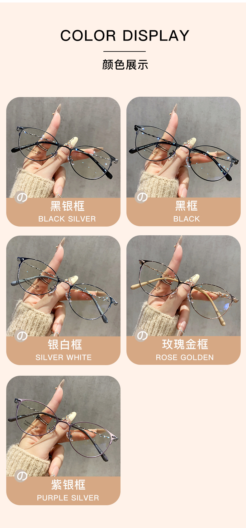 フレームカラー ブラックシルバーフレーム,黒のフレーム,ローズゴールドフレーム,パープルシルバーフレーム,シルバーフレーム