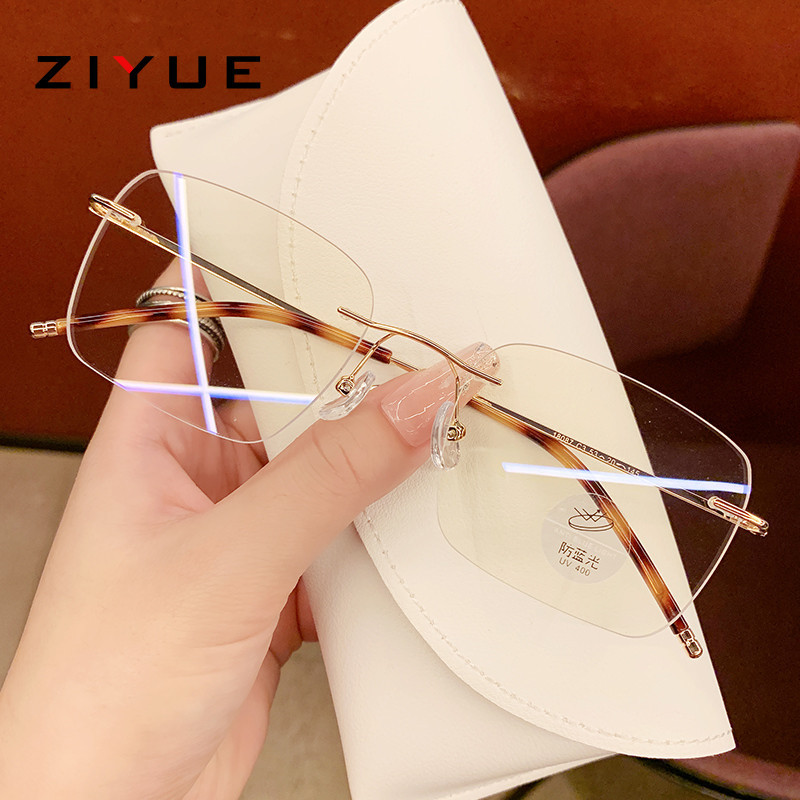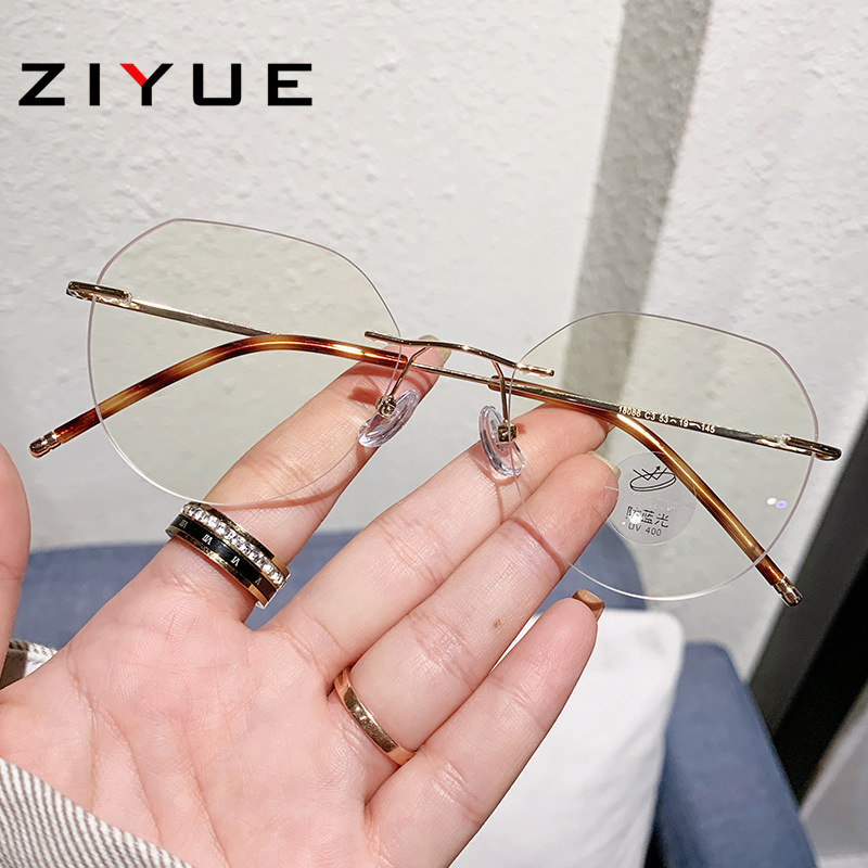 新商品の素顔のフレームなしメガネの女性ネットの赤い生放送の雰囲気感のメガネのフレームの青い光を防ぐことができます。
