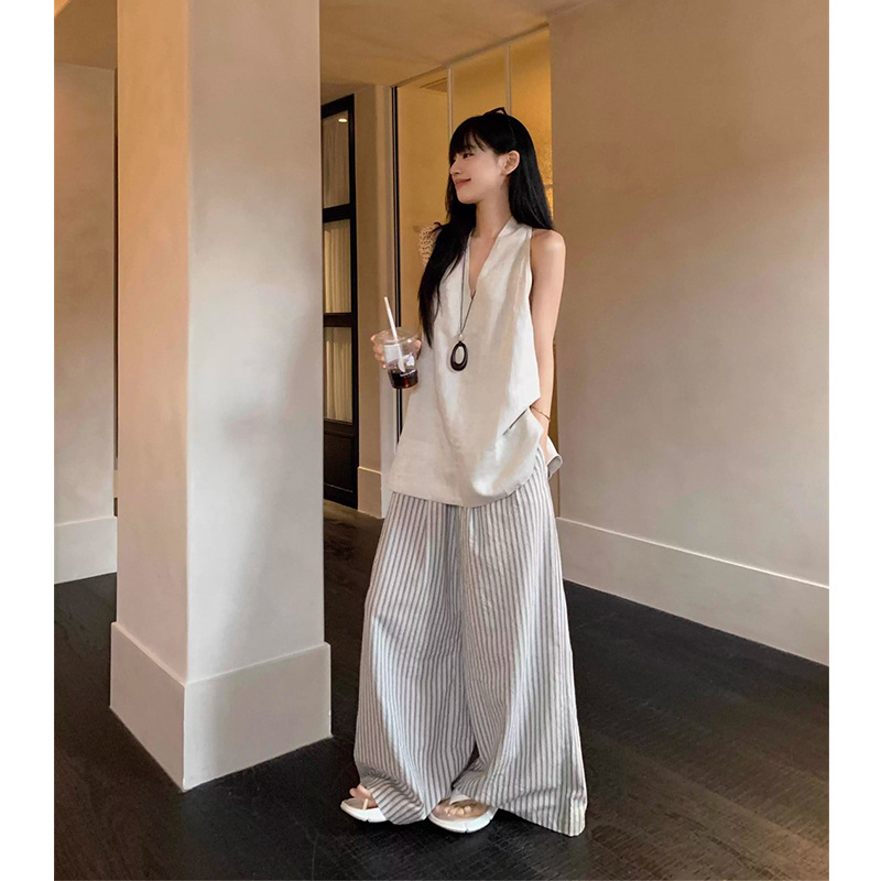 韓国の怠惰なハイエンドの女性用ノースリーブパジャマ、新しい夏のベスト、ズボン、ホームウェア、屋外で着用できるカジュアルスーツ