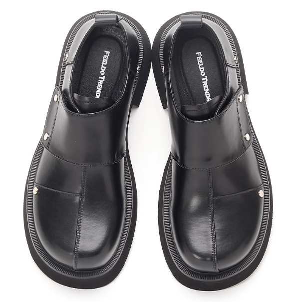 金属リベットパンク厚底靴小衆デザイン感デニム単靴潮クール大頭小革靴2025新型