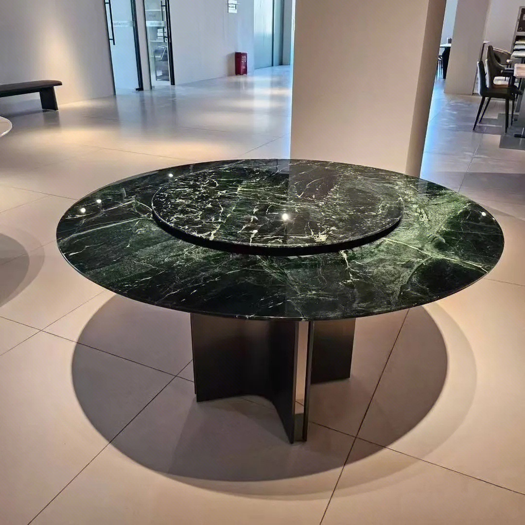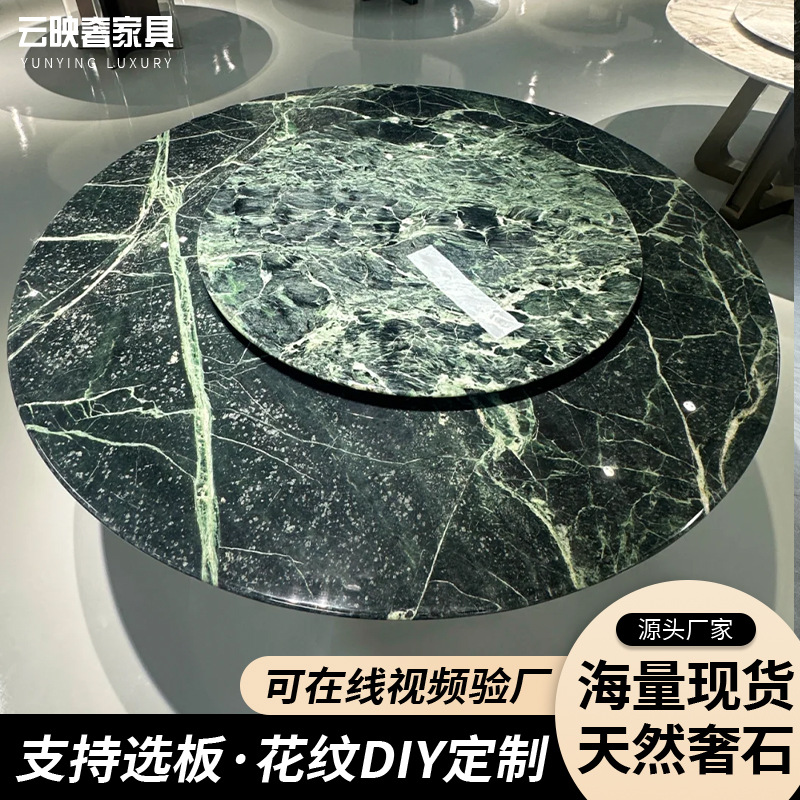 天然大花绿奢石圆餐桌意式轻奢高级感家用客厅天然大理石圆形餐桌