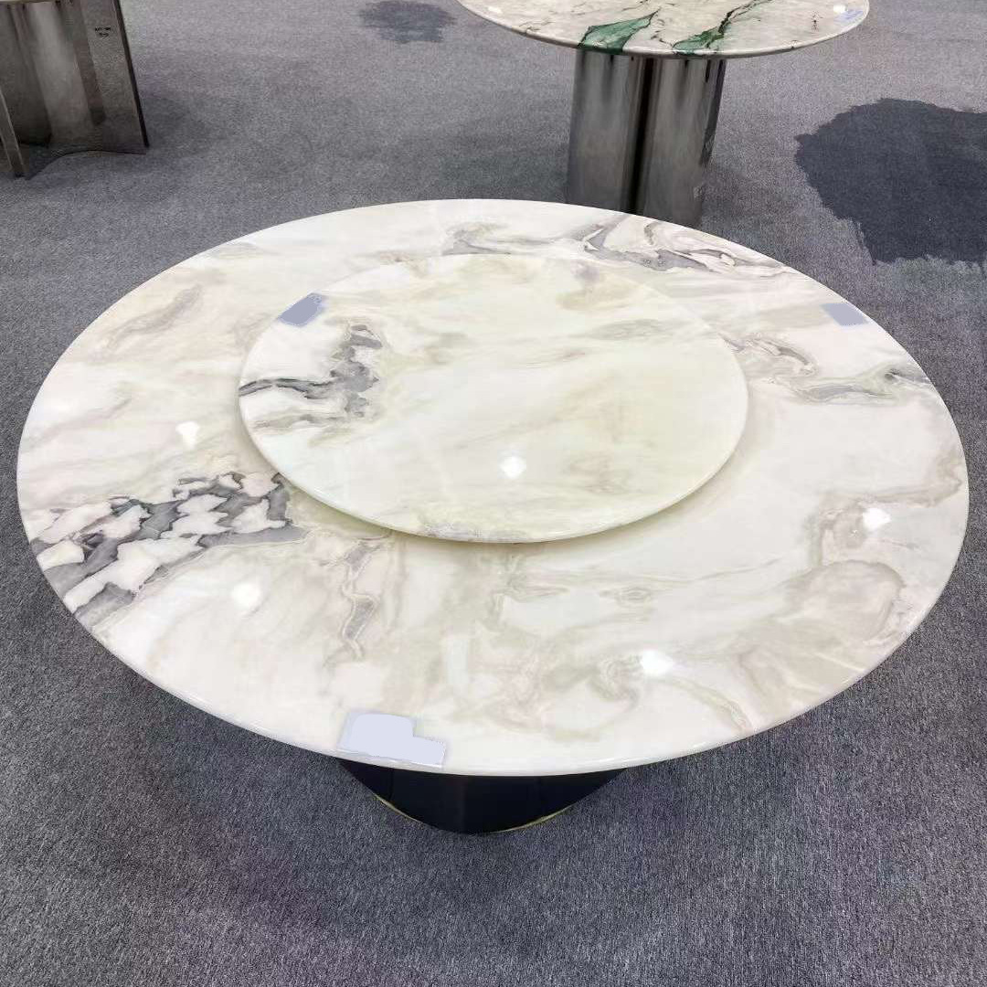 佛山カスタム高級石ラウンドテーブル家庭用シンプルなターンテーブル付きダイニングテーブル天然大理石ハイエンド高級石ダイニングテーブル