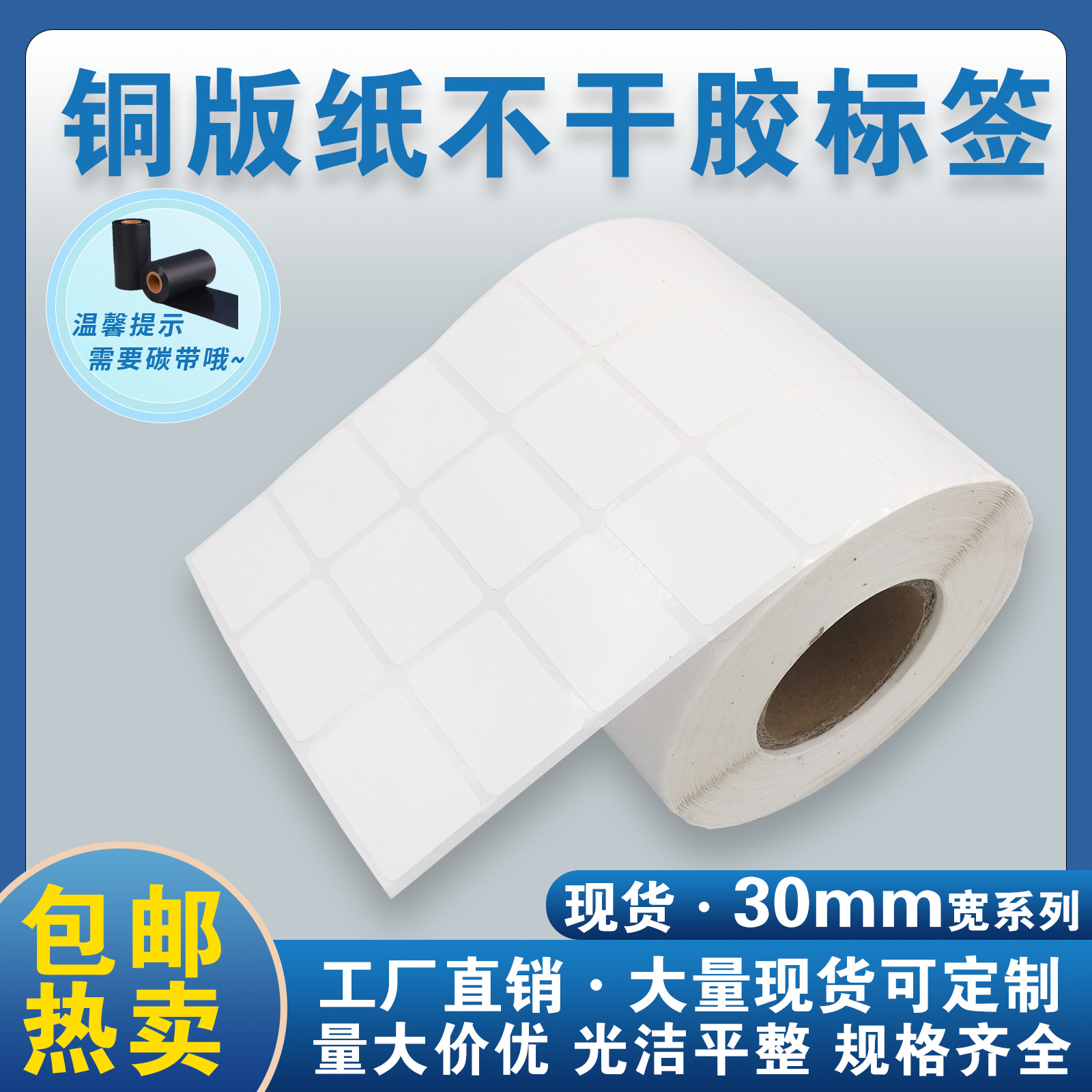 铜版纸不干胶 30mm碳带打印纸现货 印刷覆膜特惠包装自粘标签贴纸