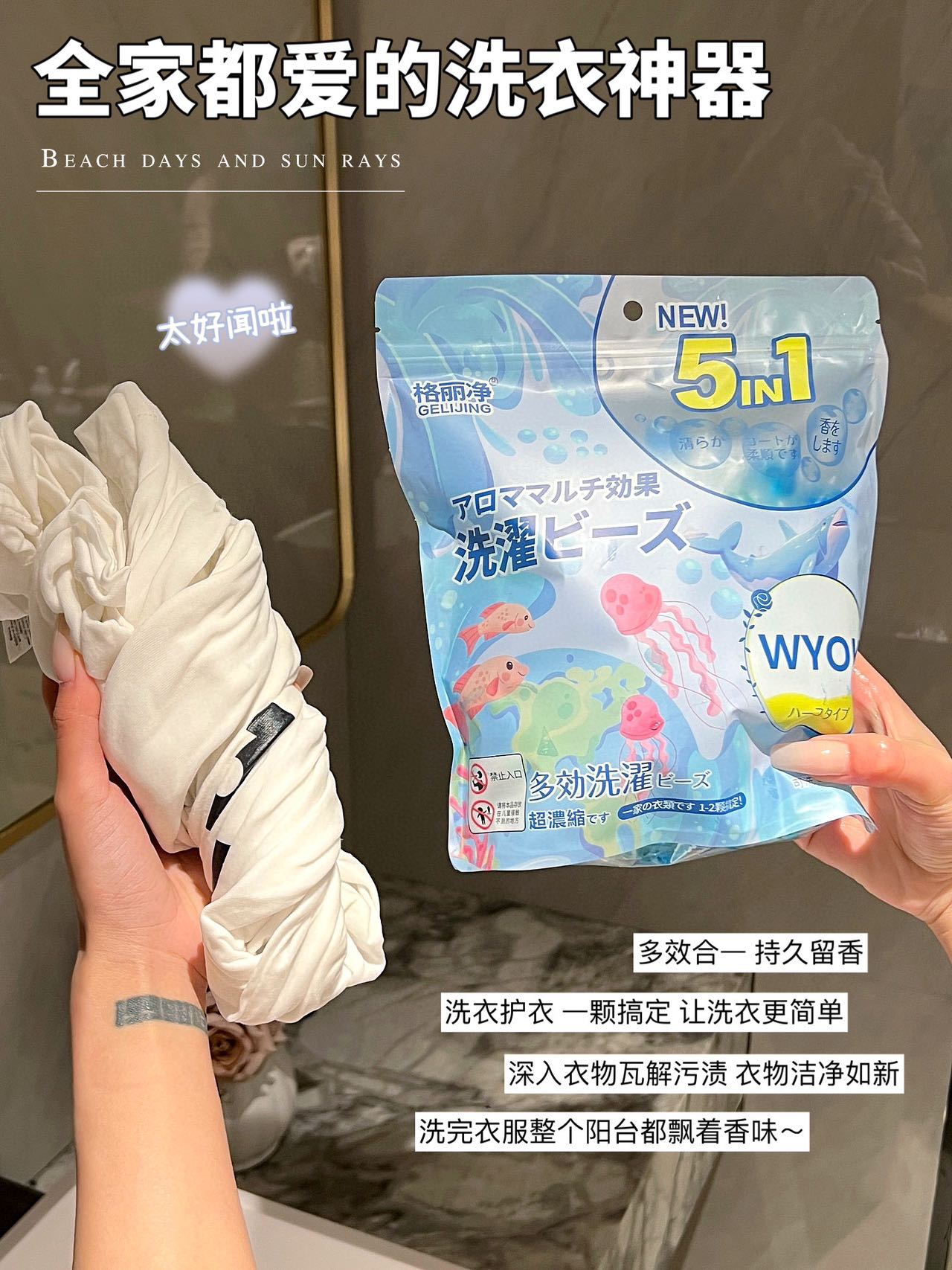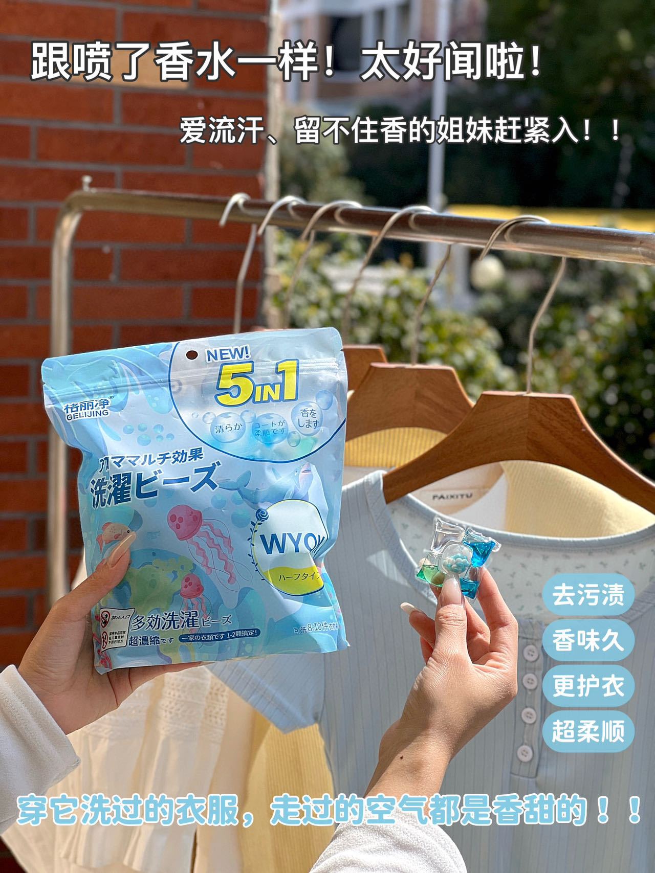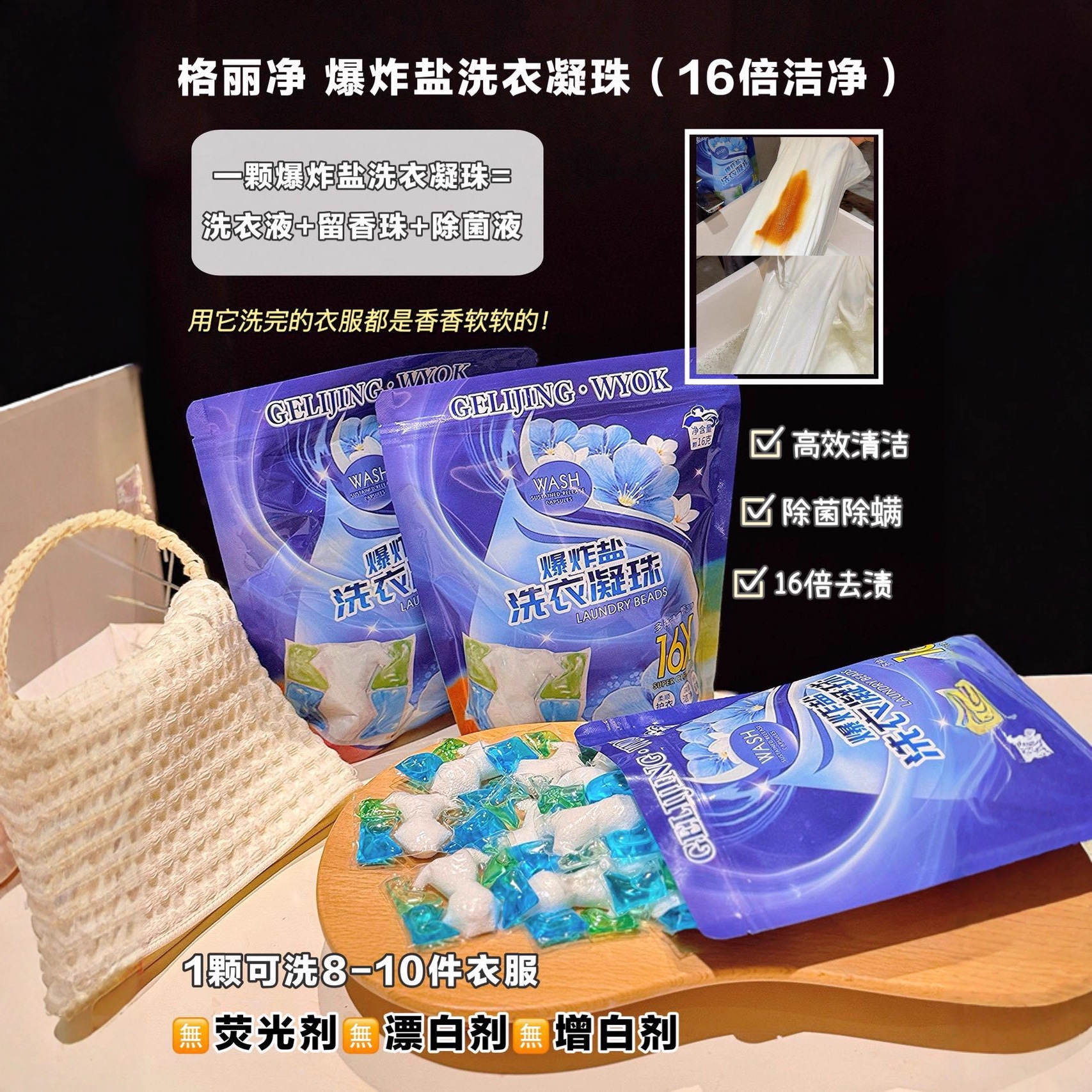 格丽净5D香氛爆炸盐洗衣凝珠五效合一深层清洁去污去渍增白留香