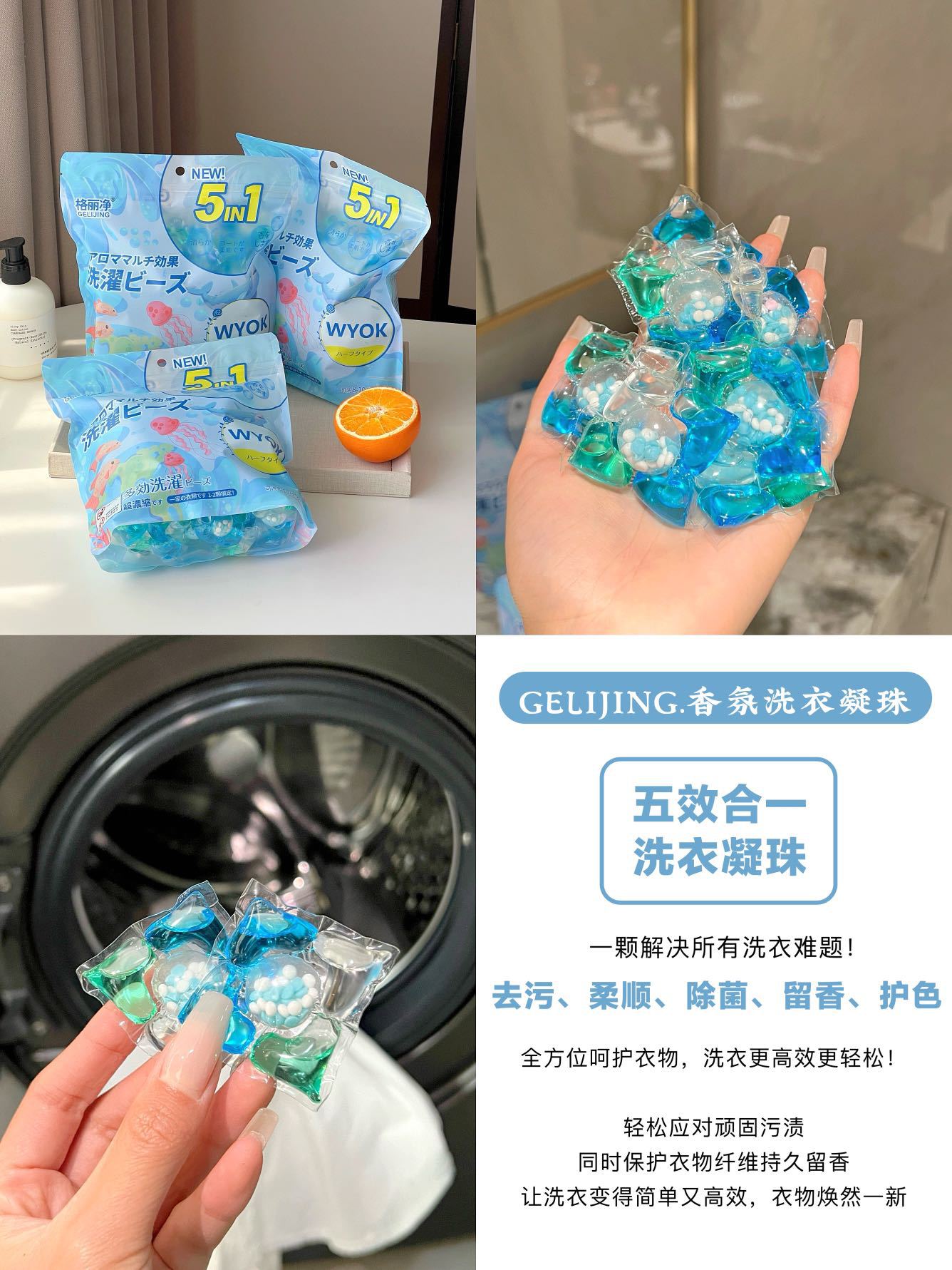 格丽浄香雰囲気洗濯凝珠留香珠五合一濃縮型洗濯液深層洗浄工場卸売り
