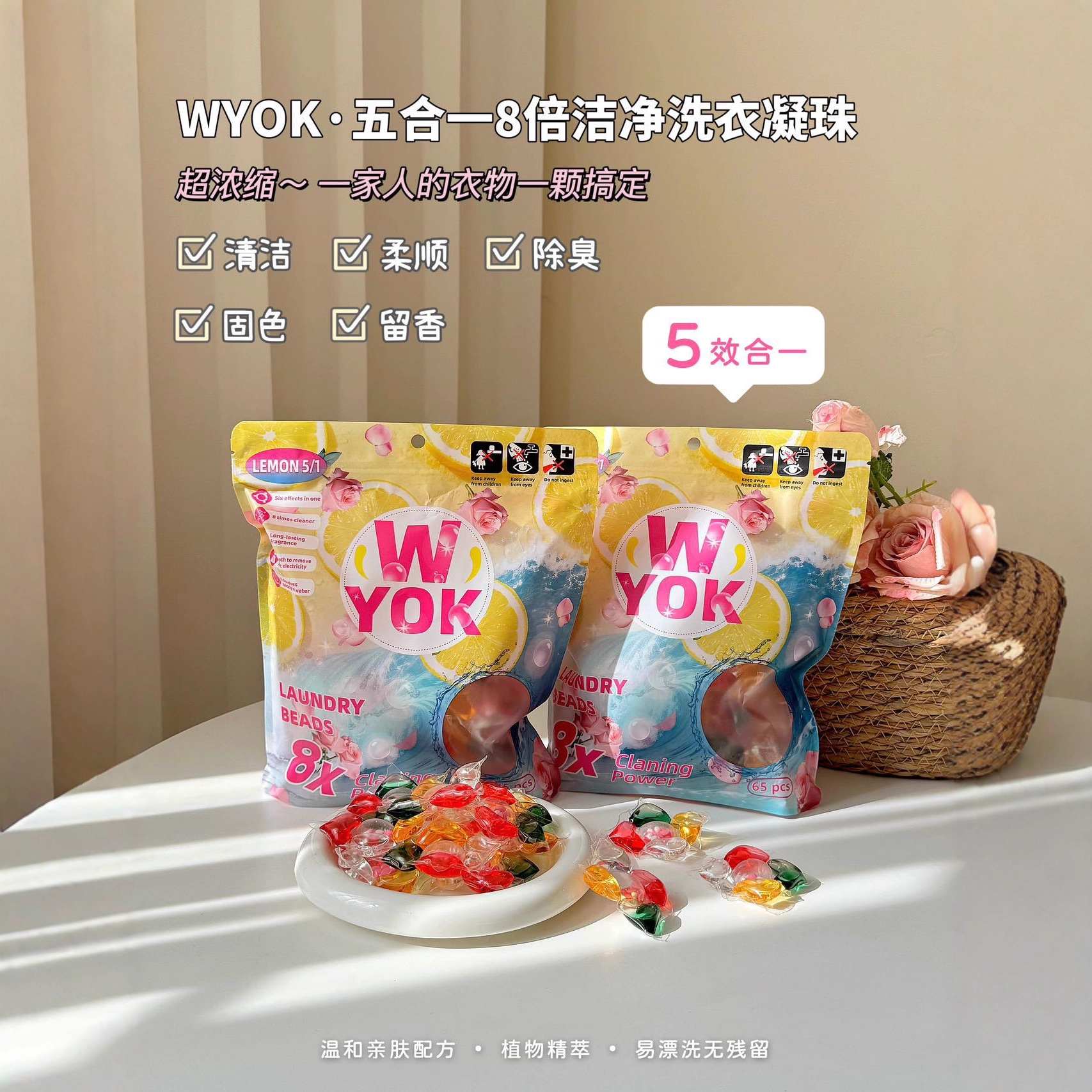 WYOK留香珠洗衣液浓缩洗衣凝珠五合一深层去渍持久留香去污柔顺珠
