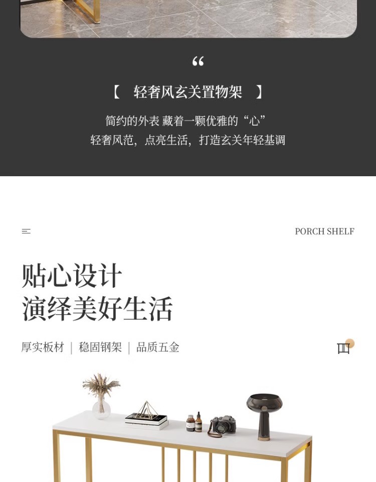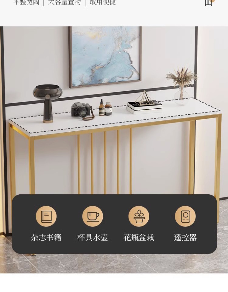 J^ライトラグジュアリースタイルのコンソールテーブル、エントランスコンソール、収納ラック、廊下ストリップ、リビングルームの壁に沿った長いテーブル、非常に狭い鉄