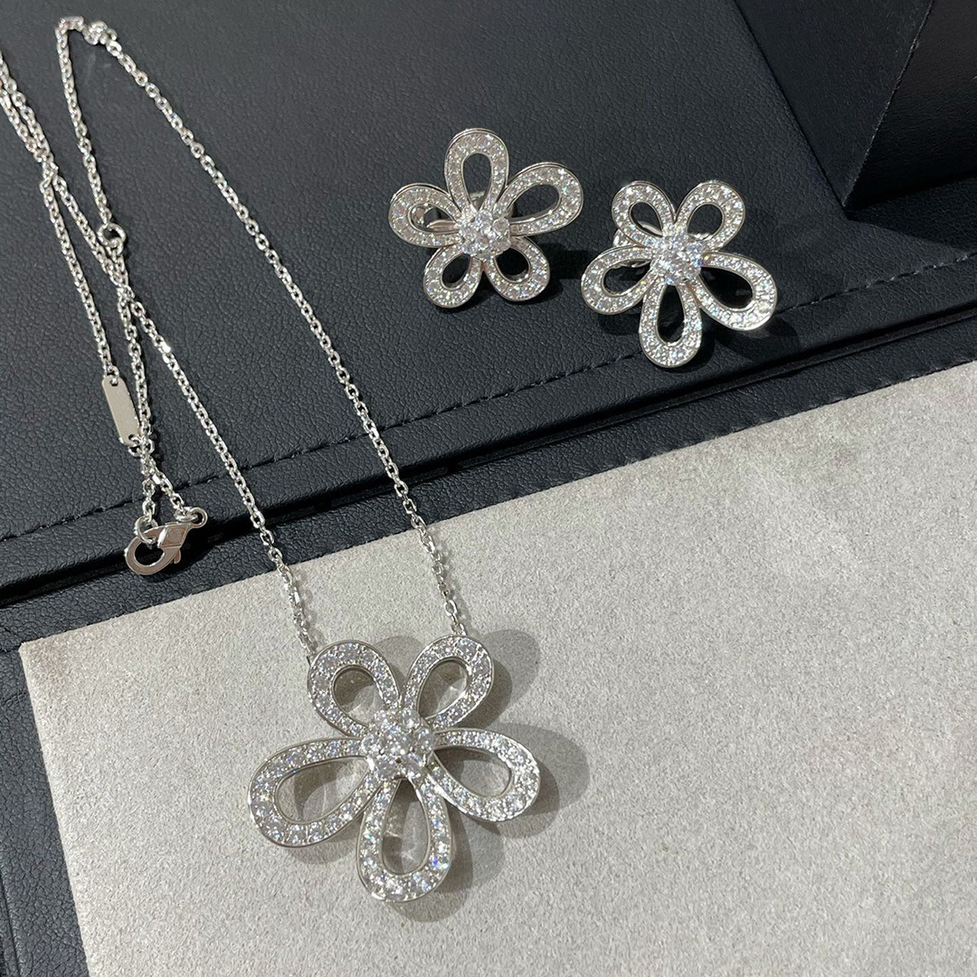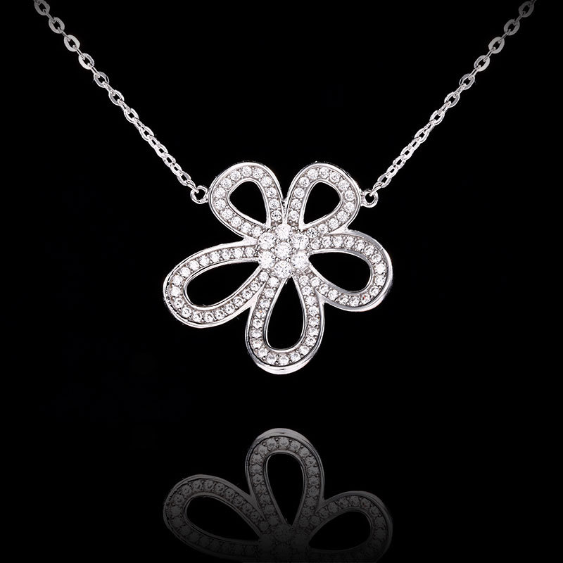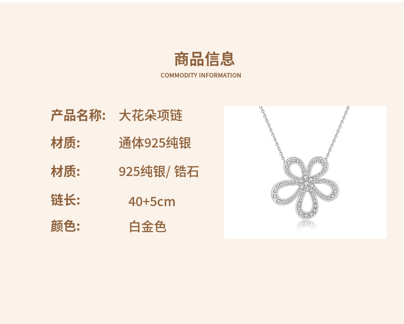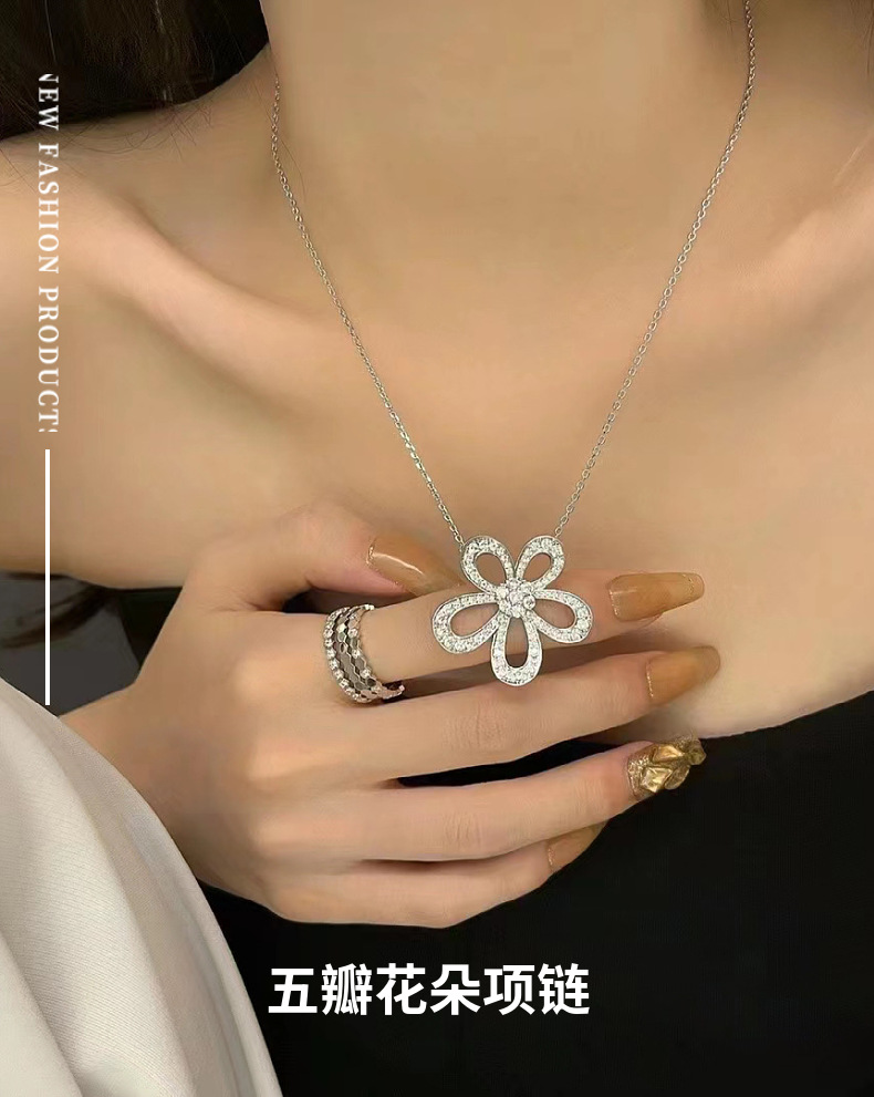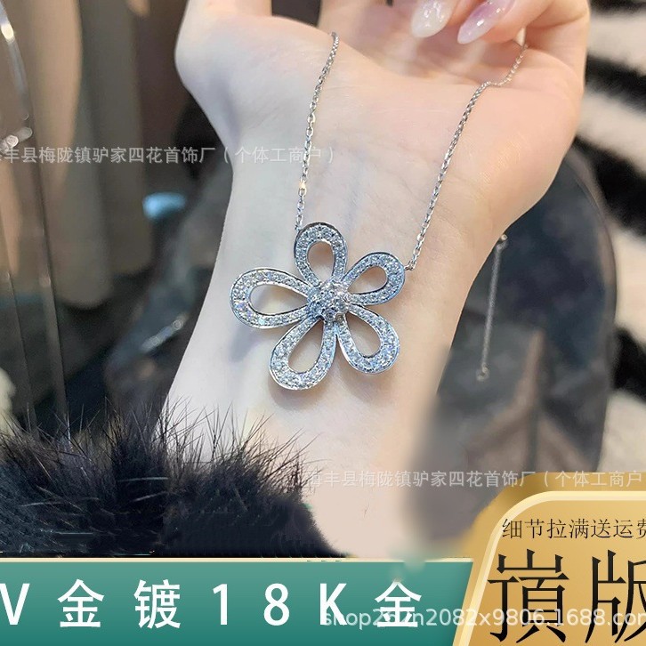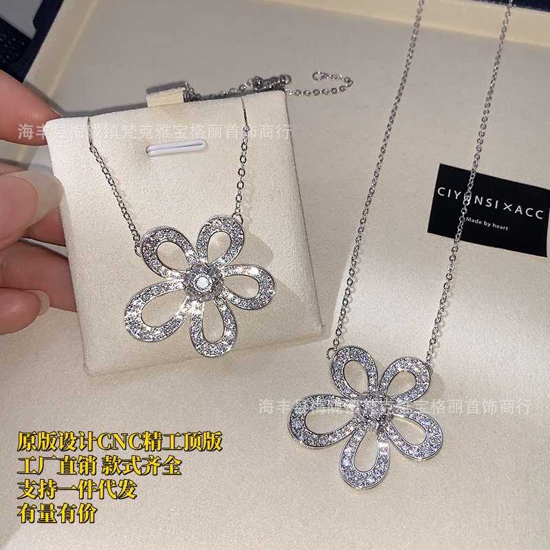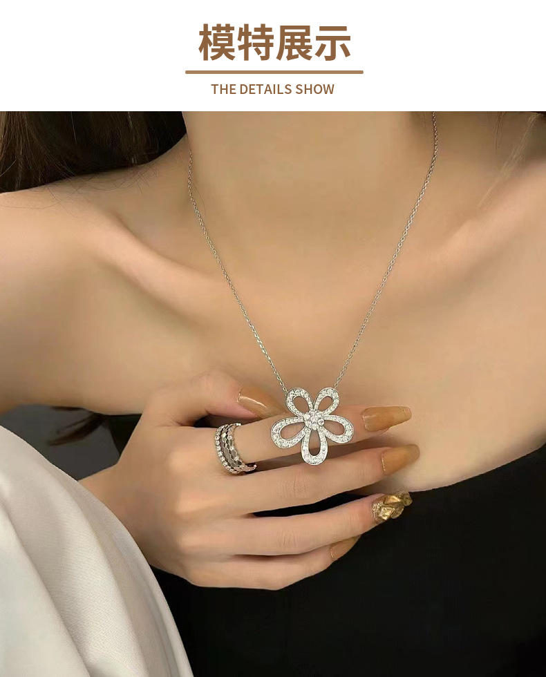 S925純銀日韓の小衆の軽豪華なドリルの大きい花のペンダントの鎖の女性のクローバーの気質の組み合わせのネックレス