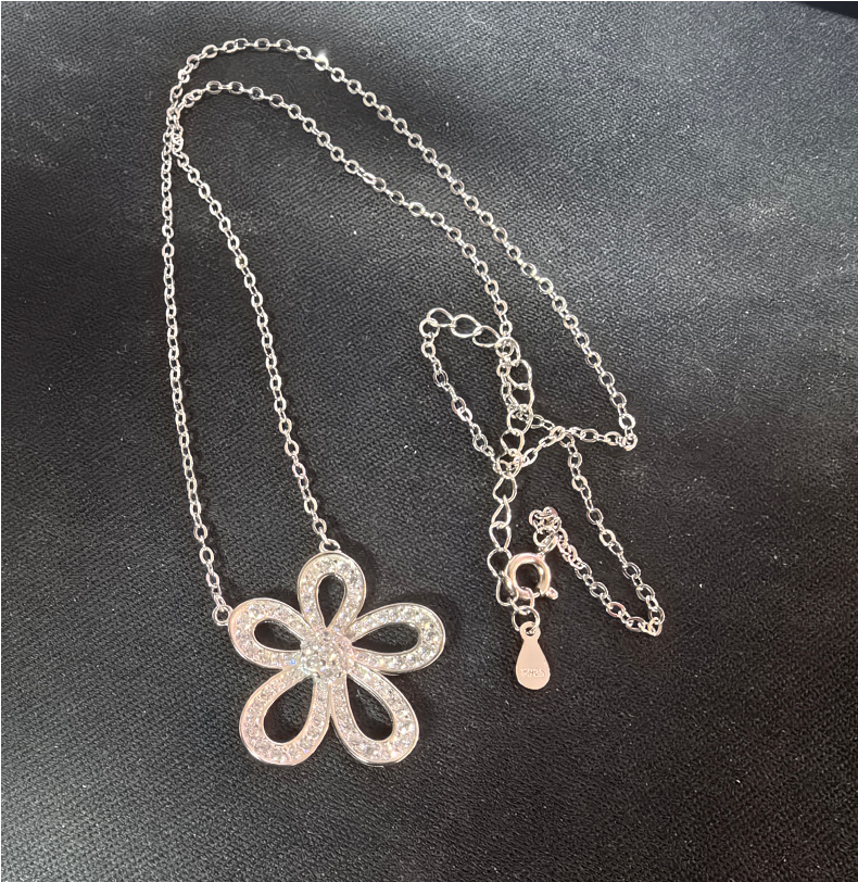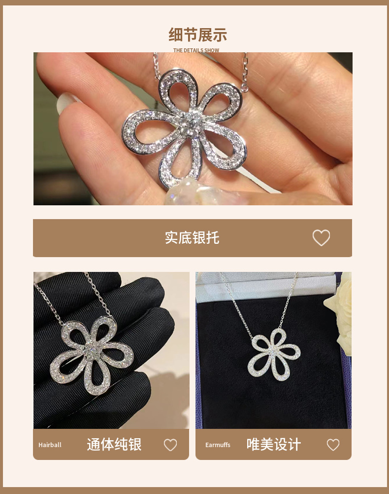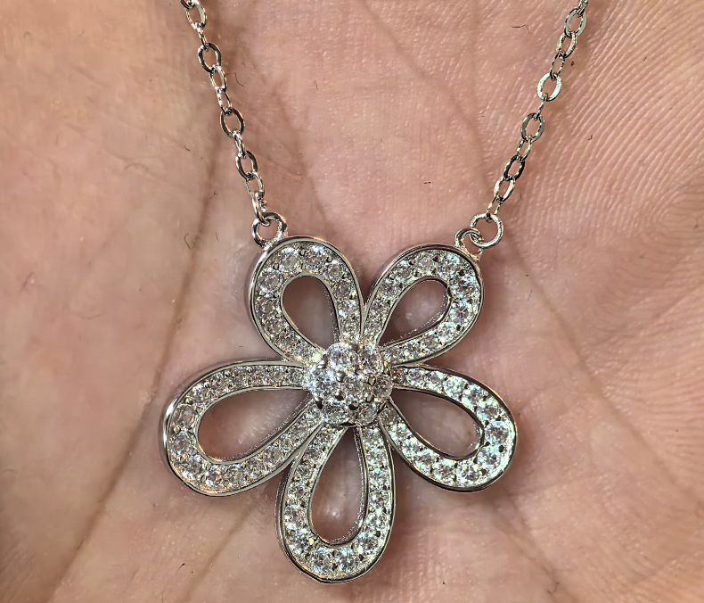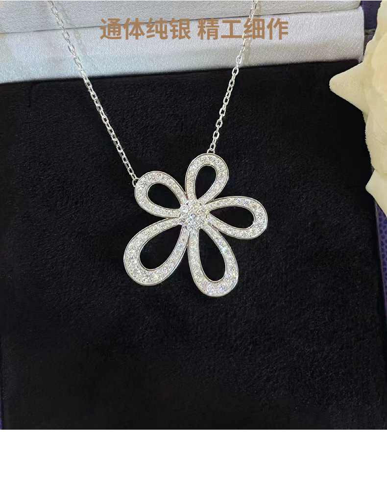 S925银色太阳花项链蜂窝底满钻镂空花朵气质小众镶钻精工工厂直销