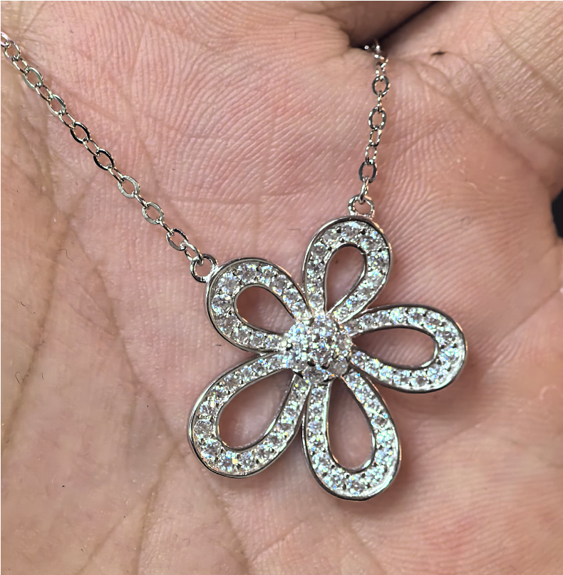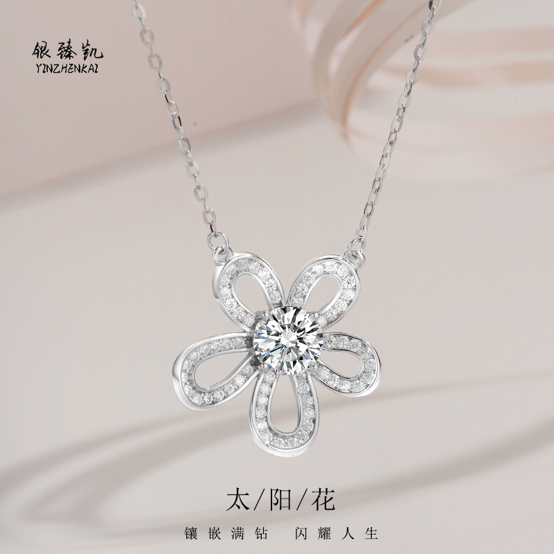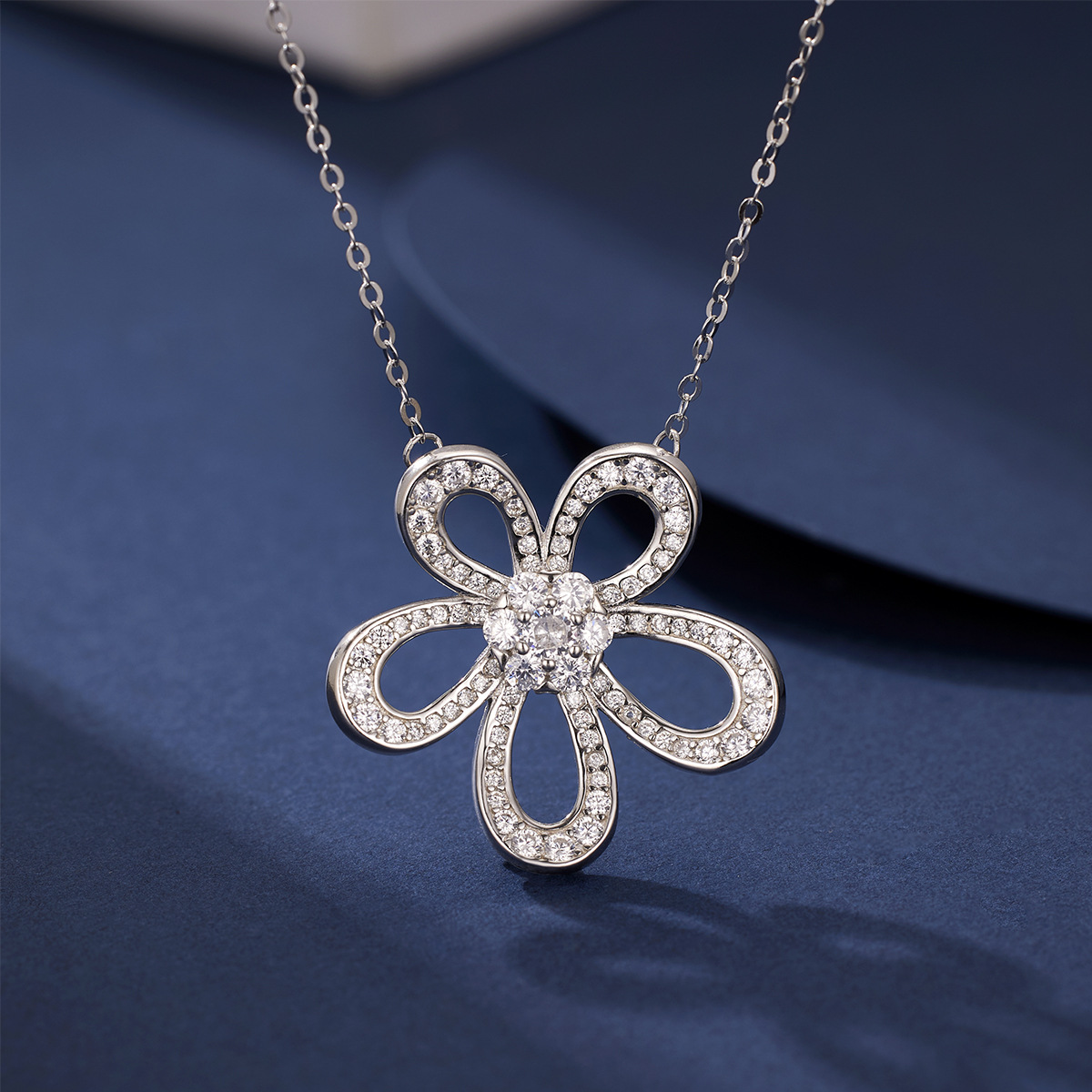 S925 スターリングシルバー モアッサナイト サンフラワー ネックレス インホットスタイル ハイエンド フルダイヤモンド 5 花びらフラワー ペンダント クロスボーダー限定