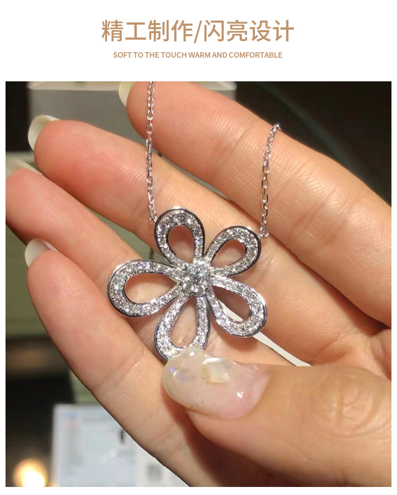 925純銀の夢幻の雪の花のネックレスの大衆の設計は組み合わせて軽くて豪華な鎖の骨のチェーンを組み合わせて彼女に簡単なペンダントの高級なものを送ります。