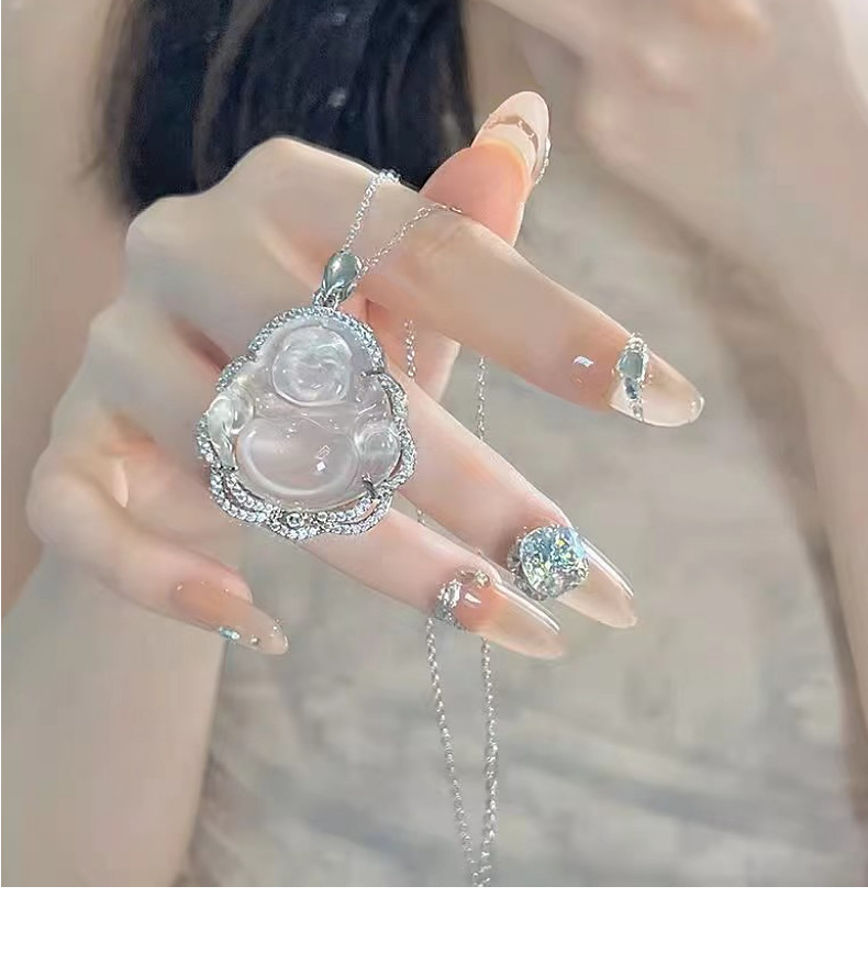 S925純銀小衆気質白玉髄四葉草ネックレス個性ファッション高級感鎖骨チェーンペンダントアクセサリー