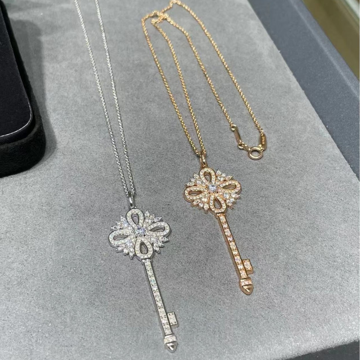 925純銀T家雪花鍵ネックレス女性満ドリル甘い百合韓版小紅書太陽花鎖骨鎖