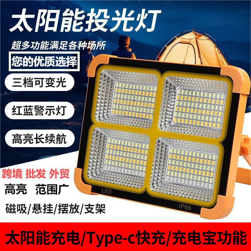 太陽エネルギー充電投光器手提げ灯屋外キャンプ灯超亮携帯家庭用移動緊急照明灯