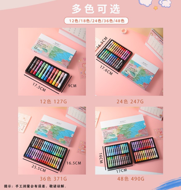 48色箱规:59*36*26.5CM/36盒/净重17kg/毛重19kg重彩油画棒