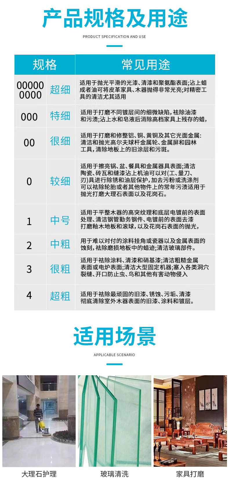 鋼線綿、鋼線ベルベット、石材洗浄、大理石床、家具研磨、研磨ツール0000番