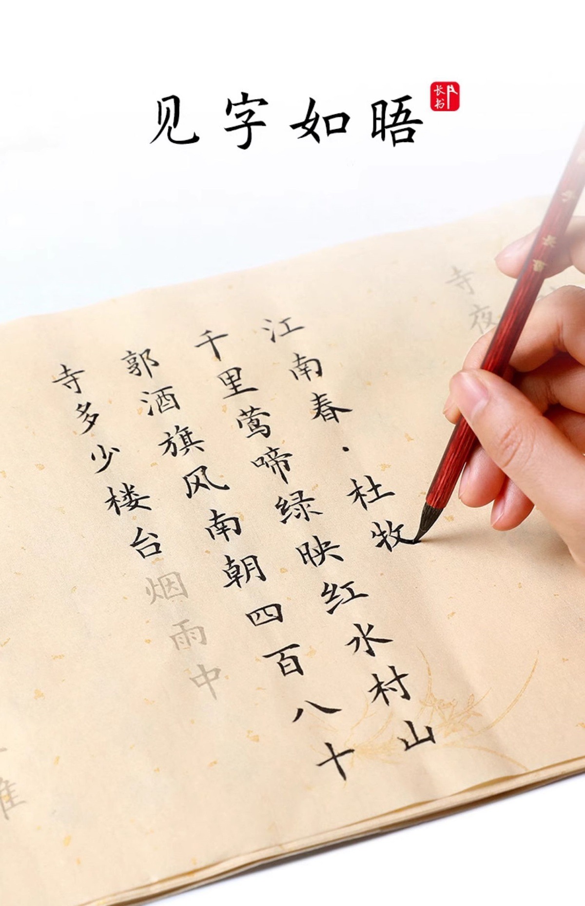 初心者向けの長書楷書毛筆書道本、書道入門、模写、ライスペーパー、欧風楷書、赤描き小楷書本