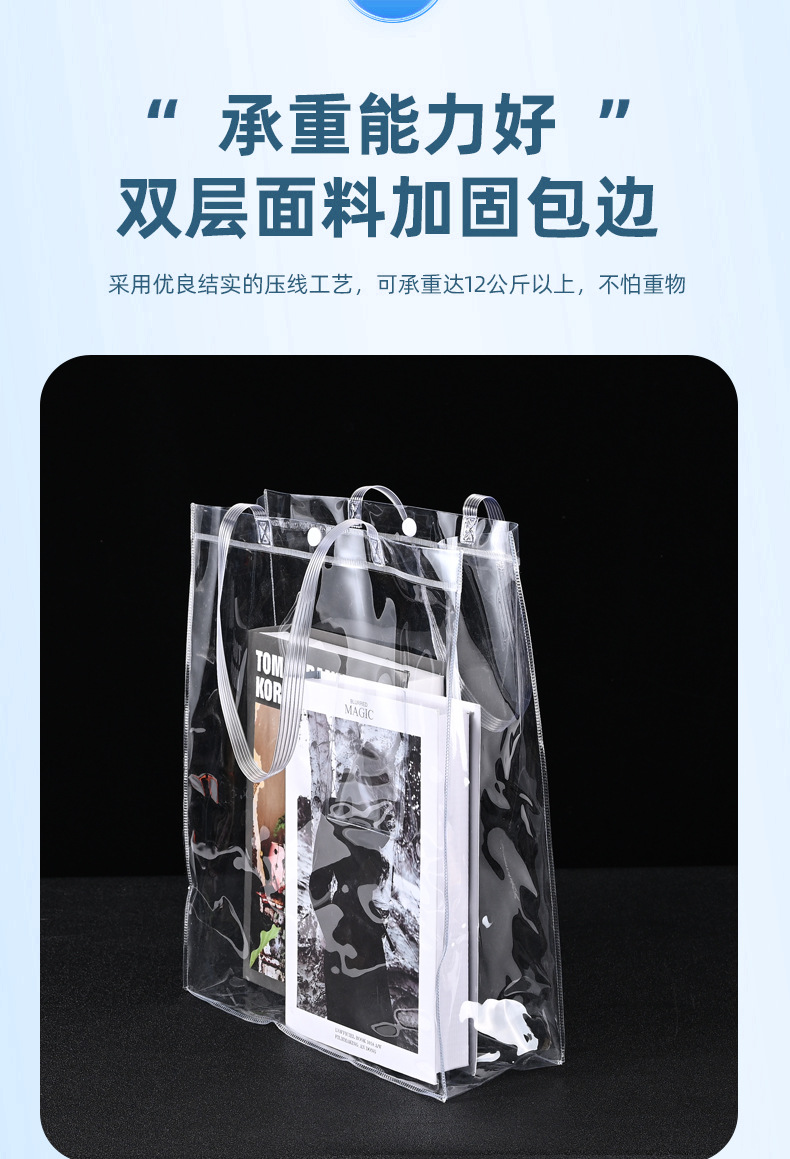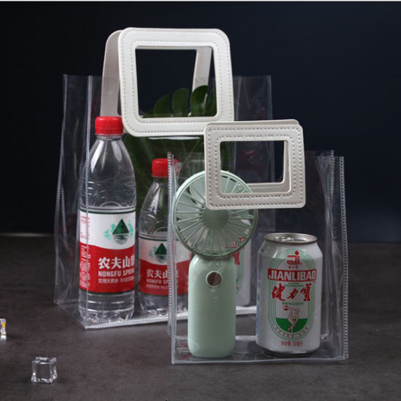 透明PVCハンドバッグ、24ミクロン厚のプラスチック製ショッピングバッグ、ワインバッグ、ギフトバッグ、お菓子の袋、記念品バッグ、厚手