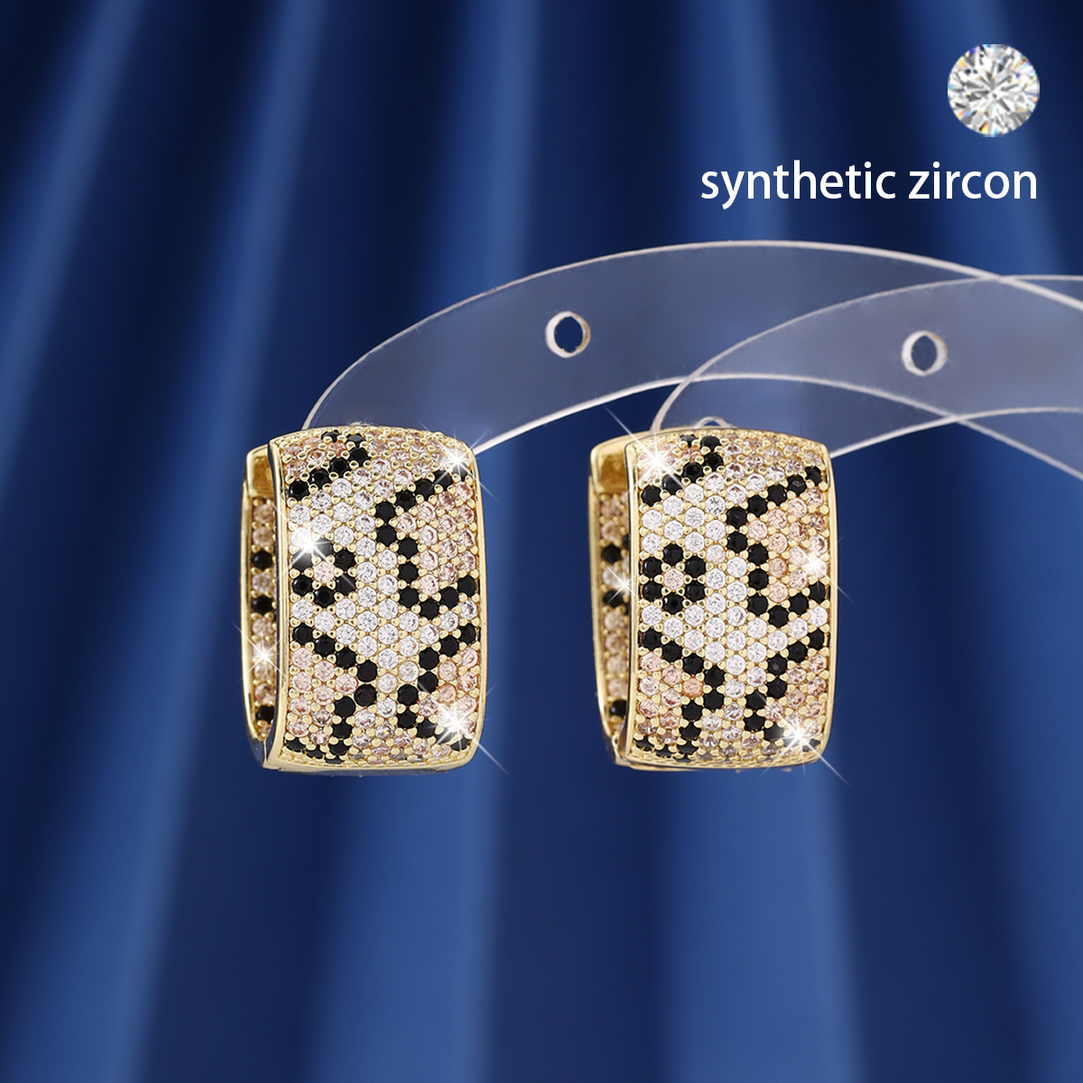 欧美轻奢豹纹耳扣高级感时尚气质锆石耳环小众设计冷淡风精致耳饰