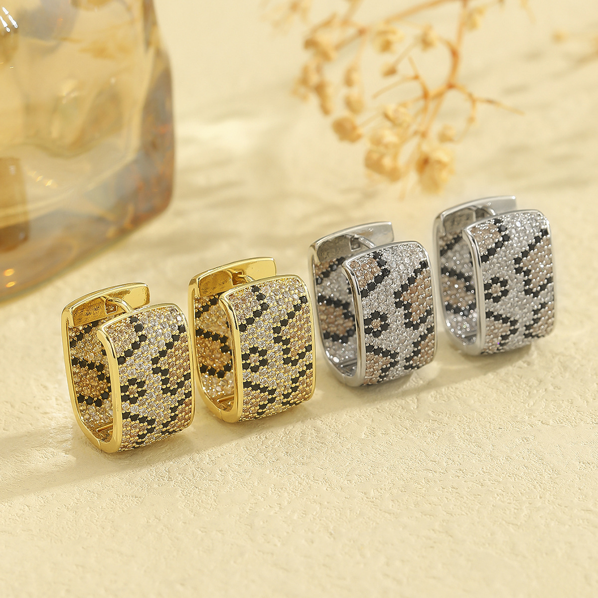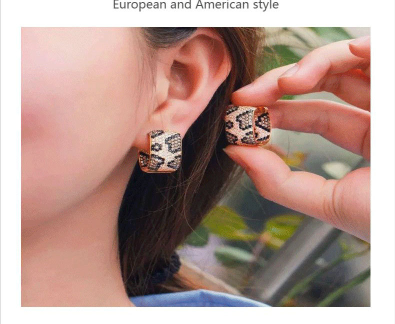 耳环女欧美气质豹纹微镶耳环复古港风时尚气质耳饰小众冷淡风耳环