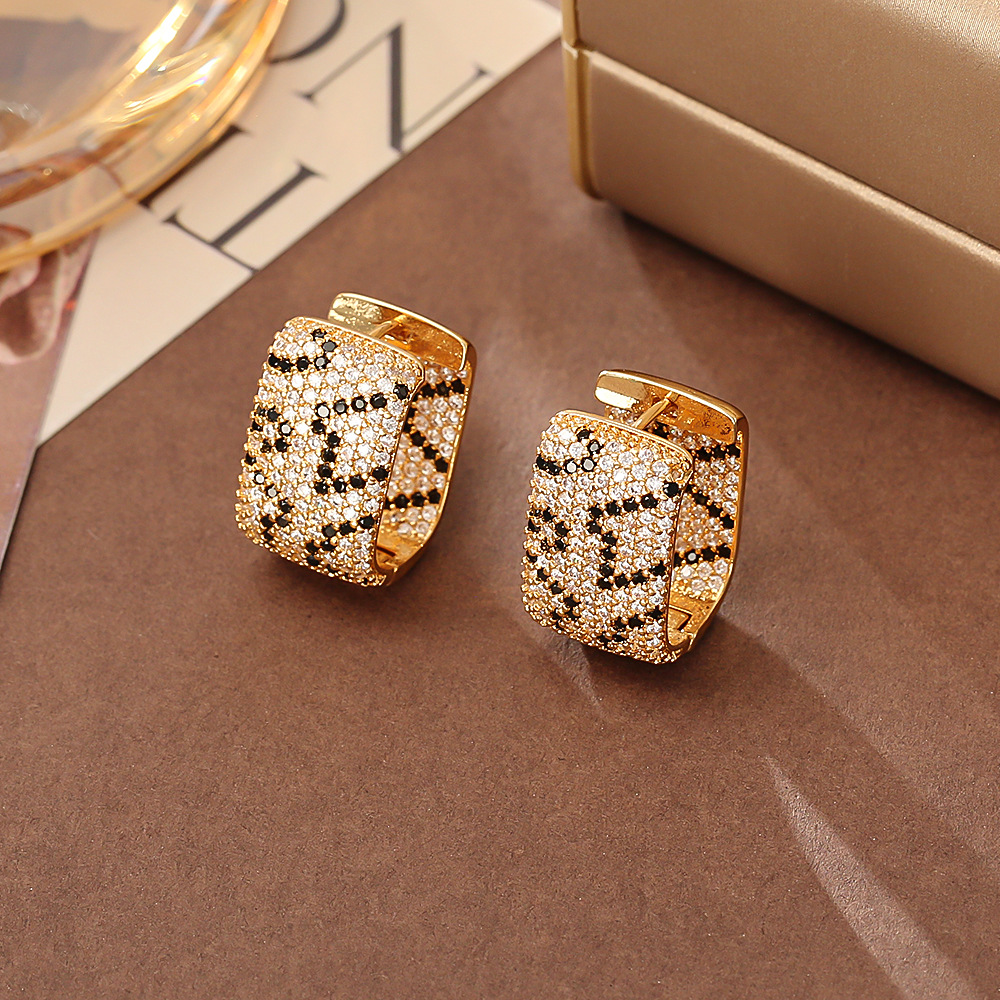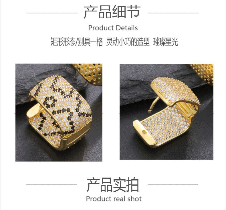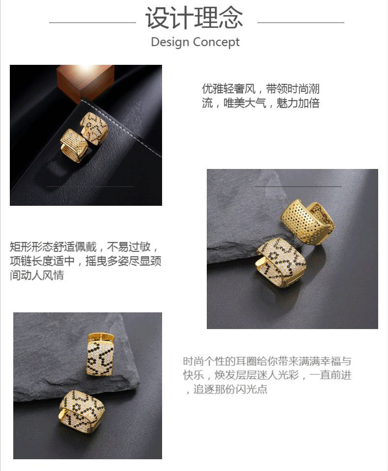 跨境热卖新款镀真金豹纹耳圈微镶锆石流行耳饰品批金色耳扣批发