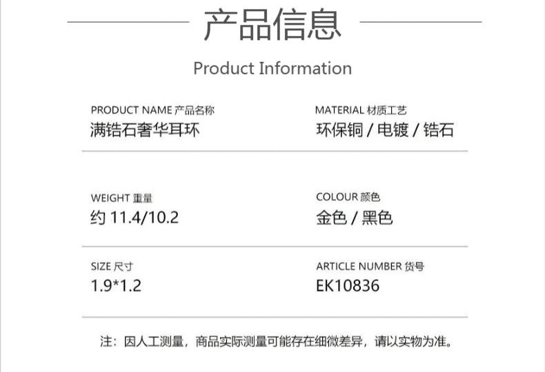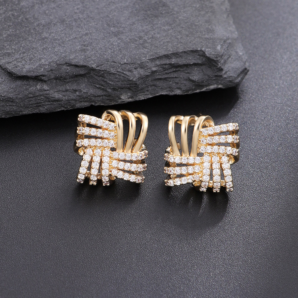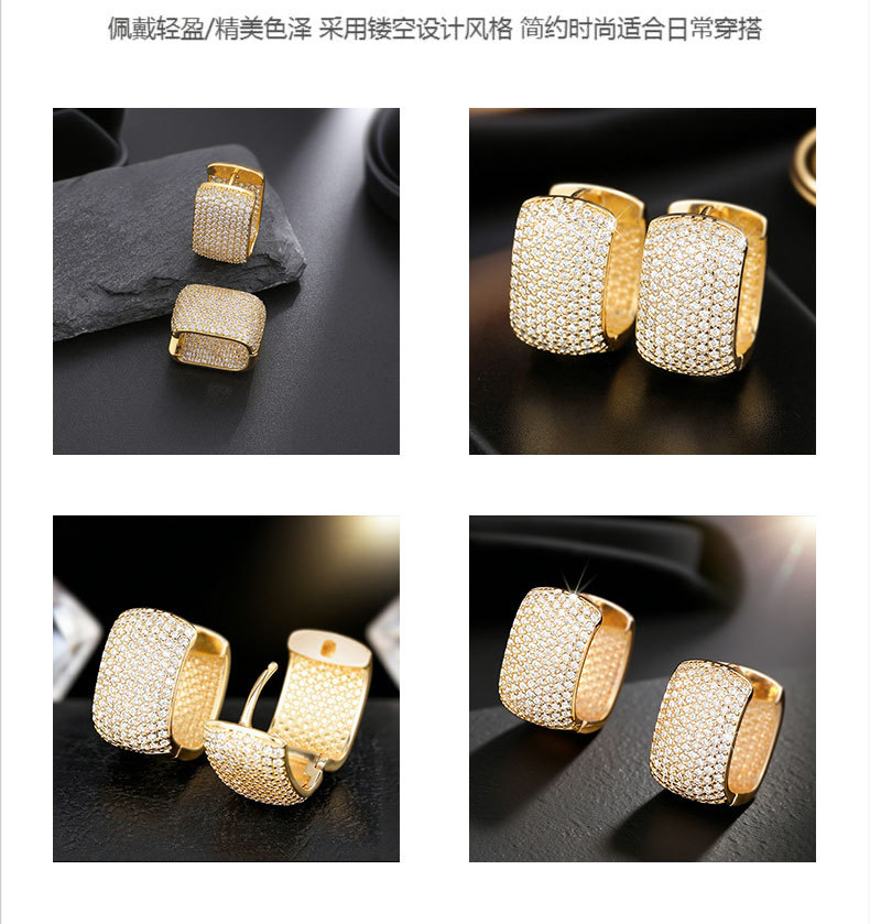 欧美轻奢时尚ins简约铜镶锆满锆耳扣 小众设计高级感耳饰批发