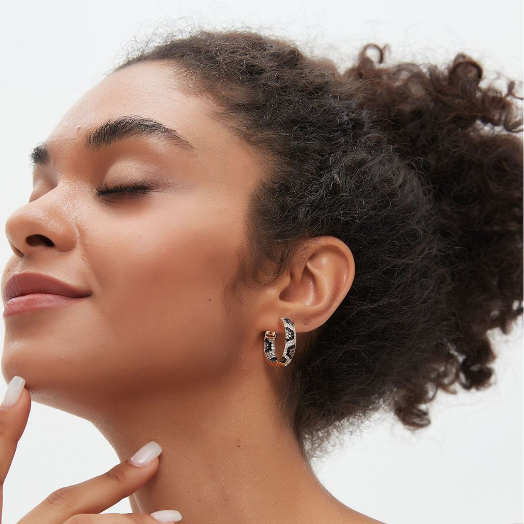 跨境时尚铜镶锆豹纹耳扣耳环个性轻奢蟒蛇纹圆形简约耳环耳饰女
