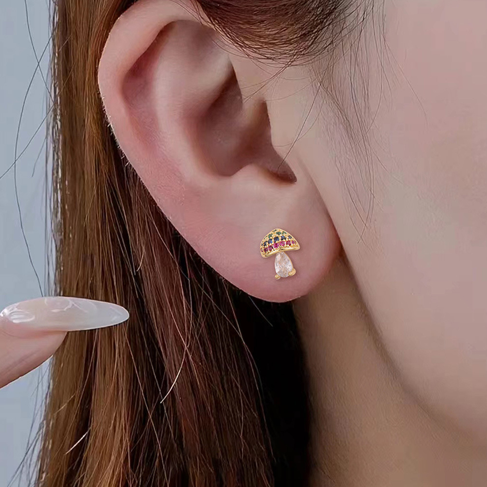 新しいキノコメッキ本物のジルコンのピアスにジルコンのイヤリングの愛の葉のキノコのペンダントは色の卸売りを保証します。