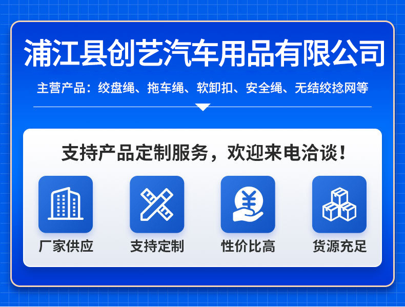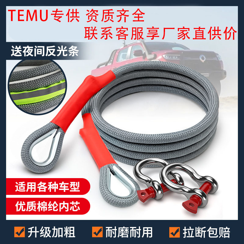 批发货车牵引应急救援绳汽车反光条抗拉抗撕裂韧拖车绳防冲断耐磨