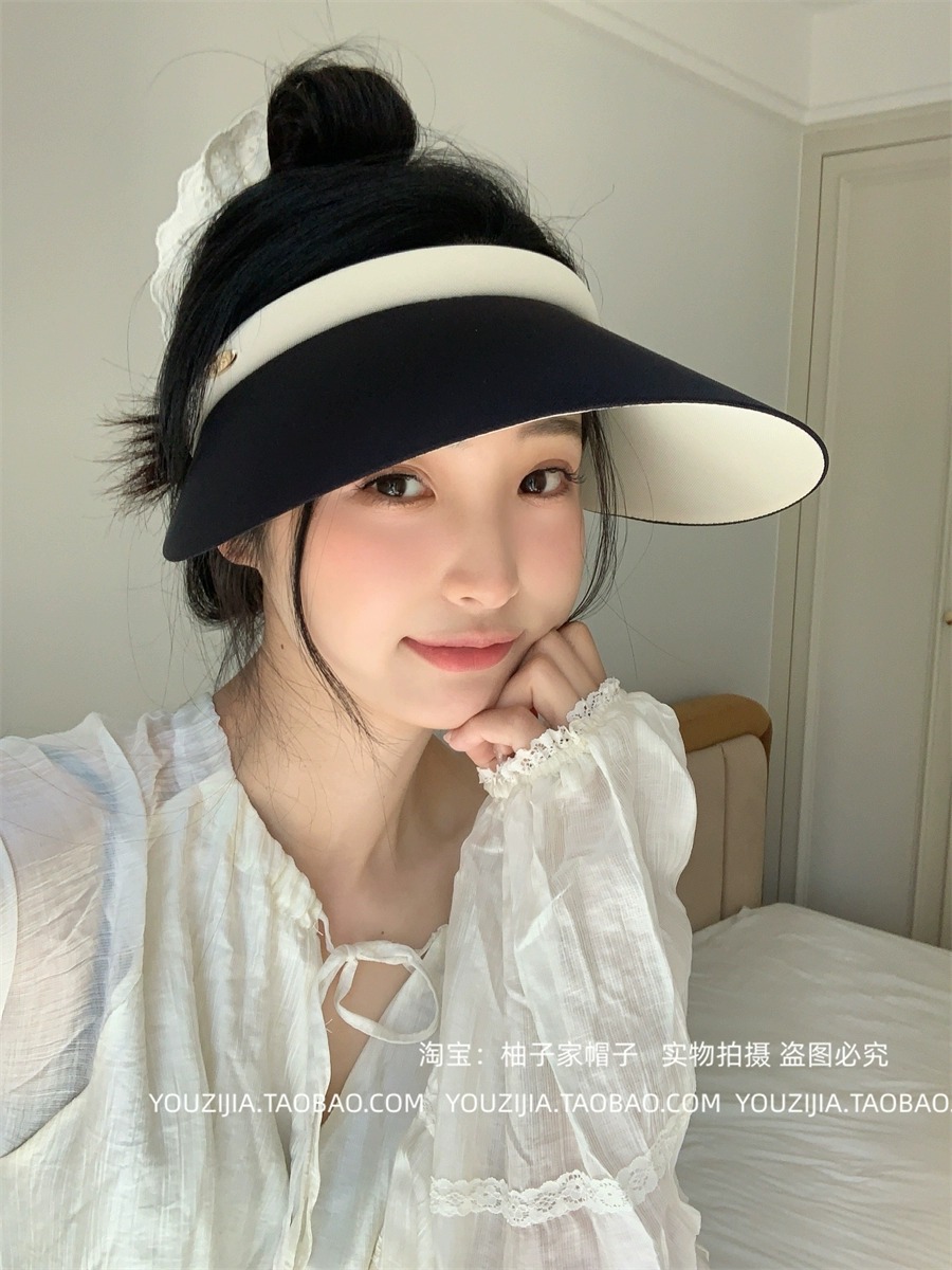 2025新型韓国版空頂日よけ帽子女性ネット赤経典シンプル太陽帽子通気減齢屋外日よけ休日