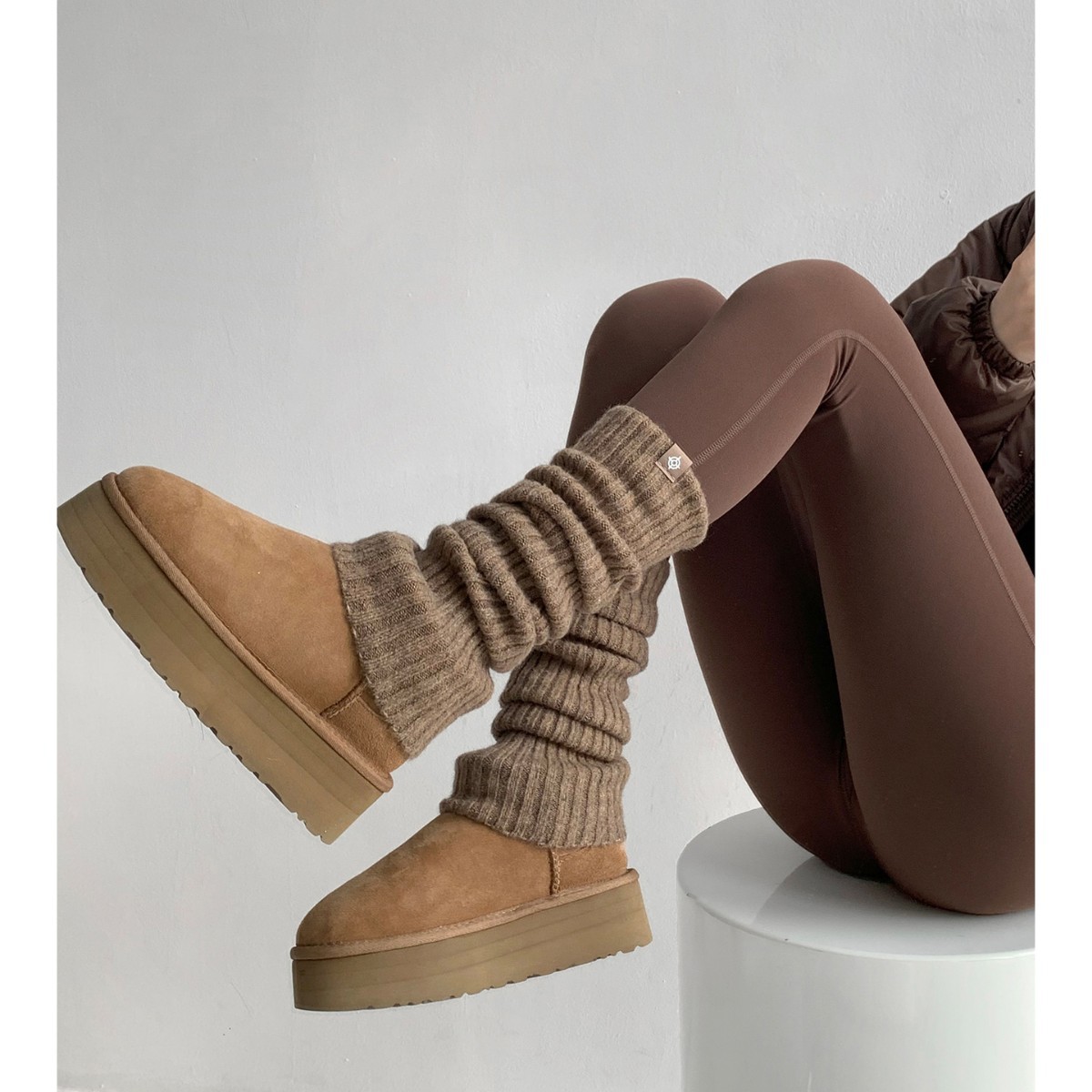 日韩针织保暖袜秋冬纯色简约百搭小腿套堆堆袜休闲美拉德中筒袜