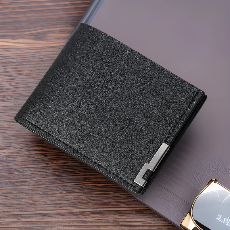 男士短款钱包韩版铁边青年男式横款多卡位钱夹潮流商务卡包 现货