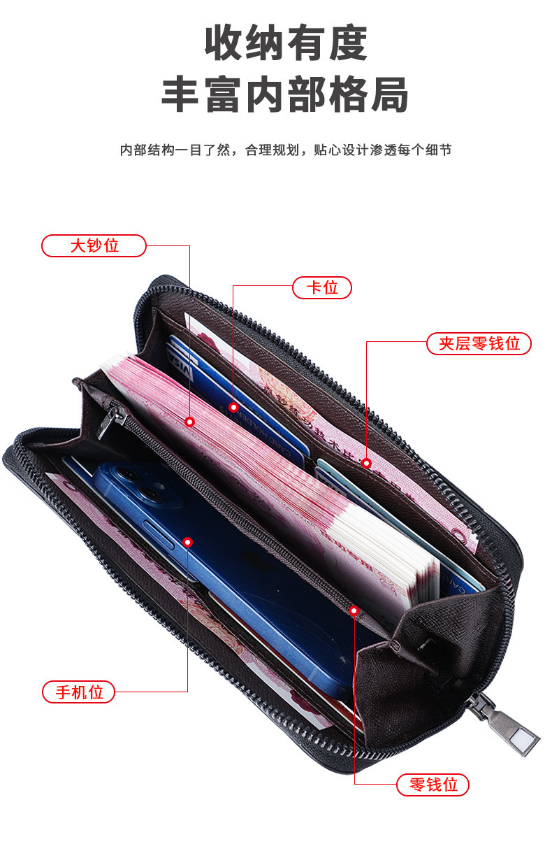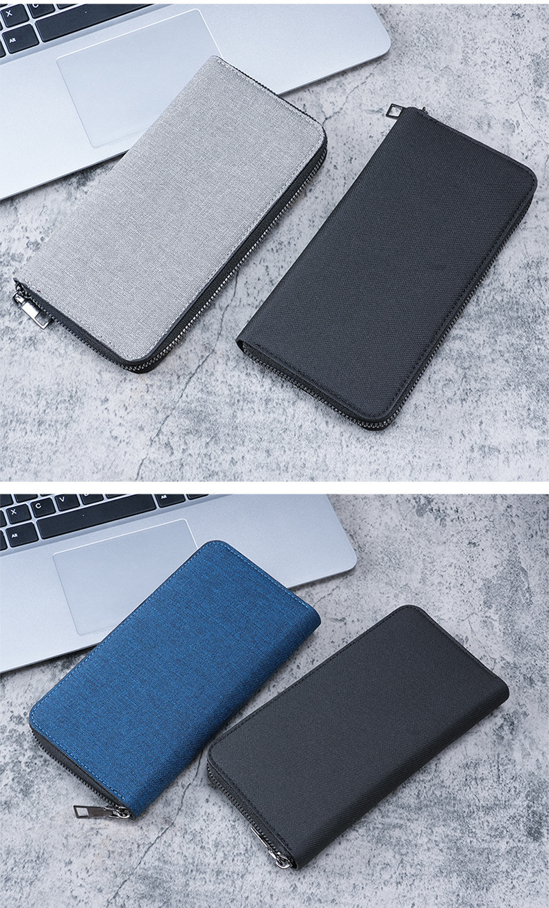 厂家批发男士长款拉链零钱包大容量多卡位商务帆布跨境手拿包卡包