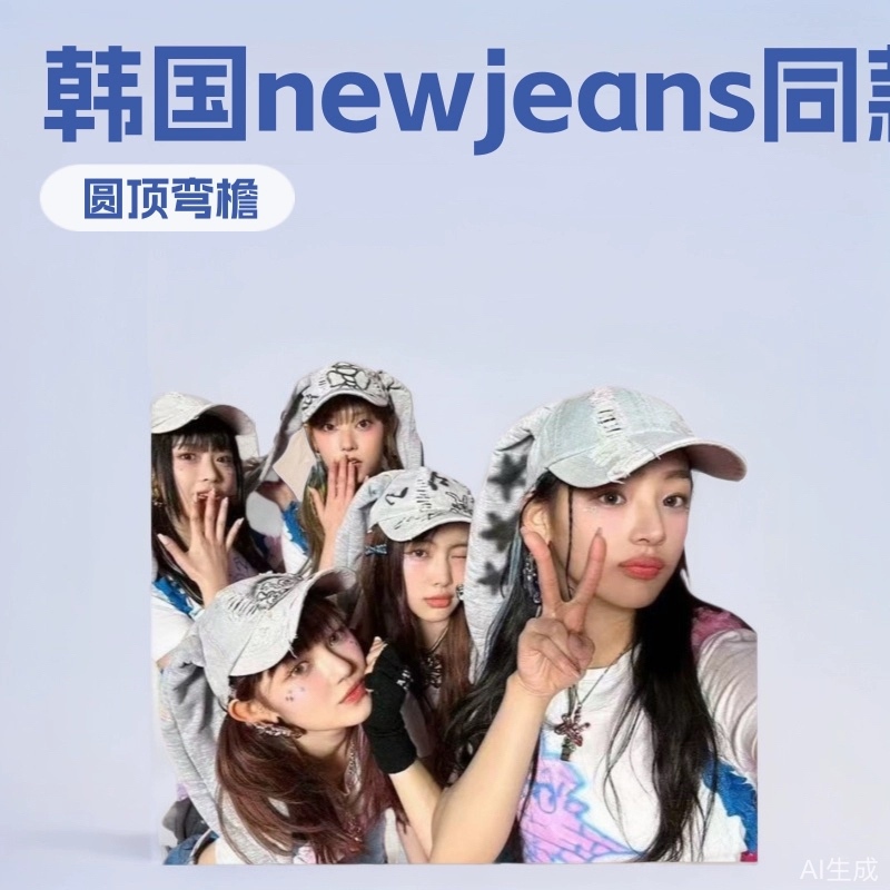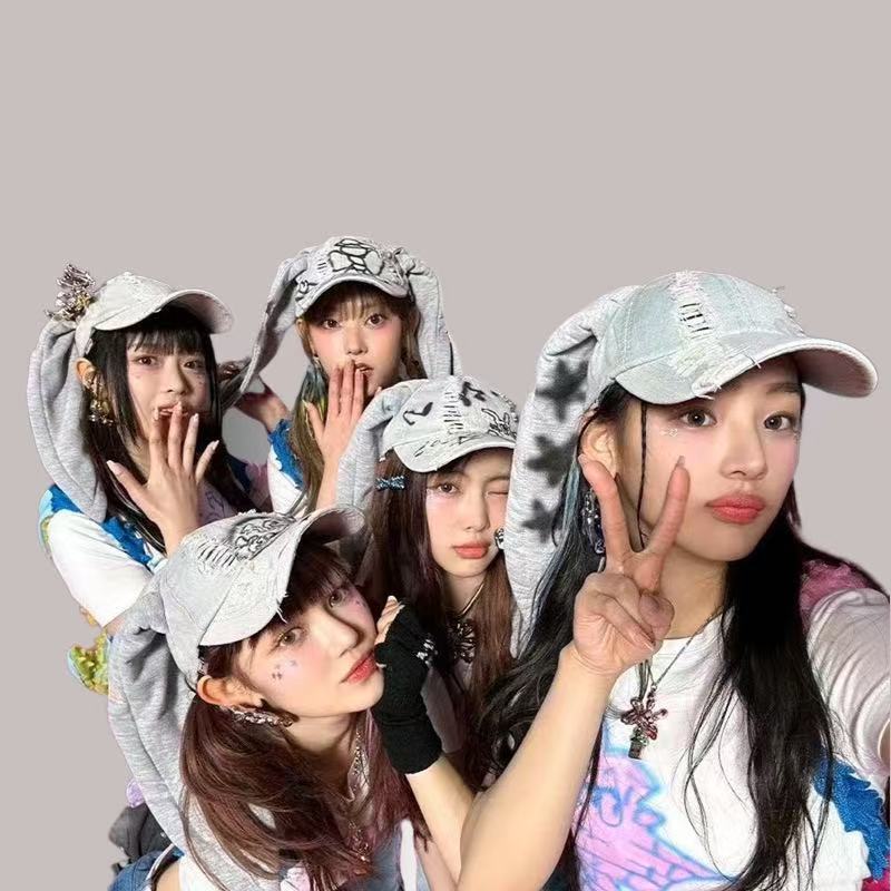 韩国newjeans同款兔耳朵鸭舌帽子牛仔水洗涂鸦港风舞蹈棒球嘻哈帽