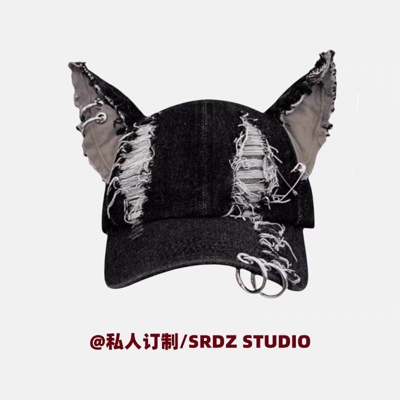 デザイナーy 2k廃土風個性鉄環カウボーイ破洞野球帽子供立体耳街頭鴨舌帽