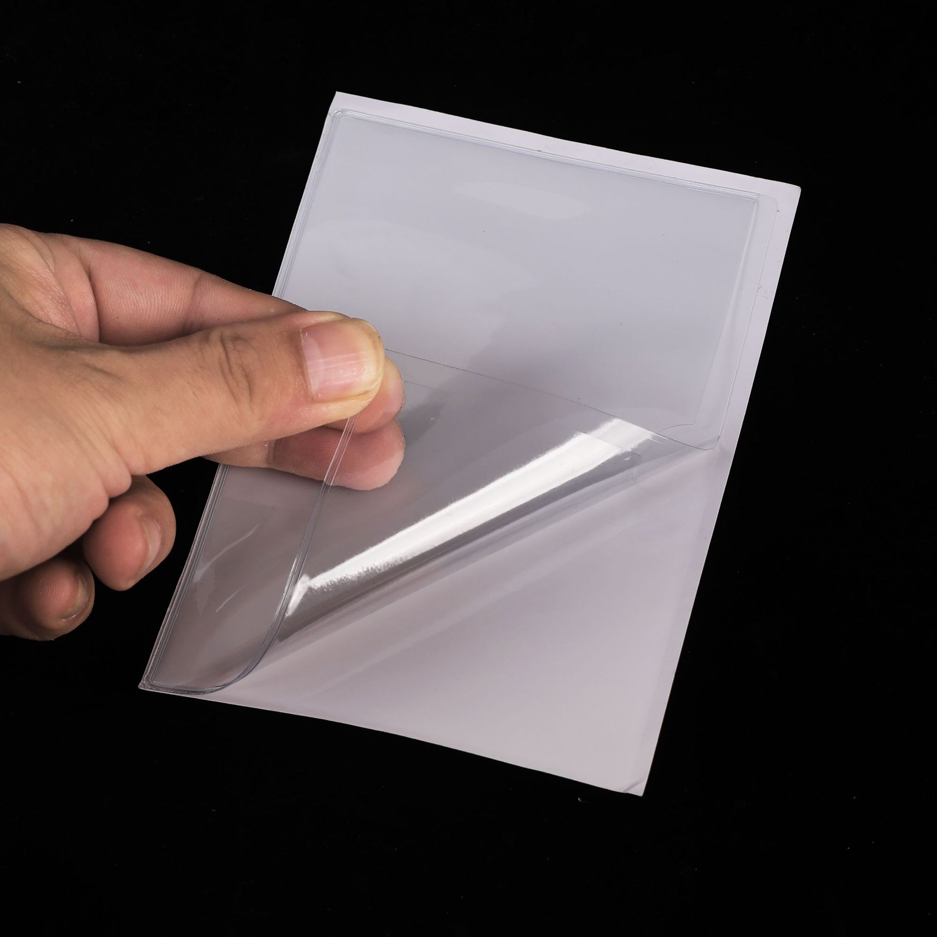 透明なバックゴムのラベル袋の柔らかい膜の材料のカードカバーのプラスチックの自己接着の回転箱の標識カバーの防水の値札の保護カバー