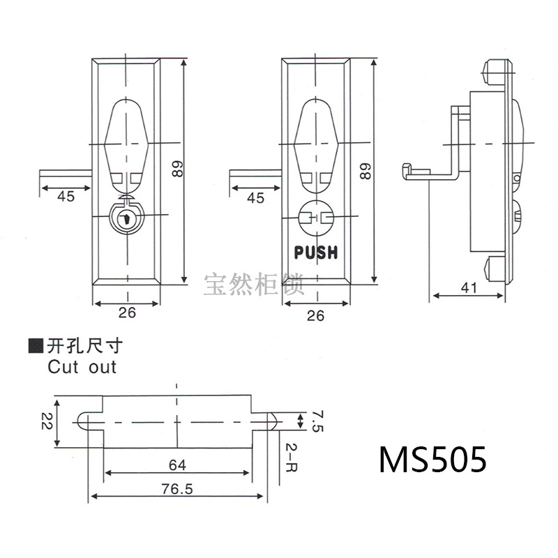 Baoran 電気ボックスロック MS826 エレベーターロック機器シャーシツールボックスシリンダーロックスイッチキャビネットリプライヤーターンタングロック