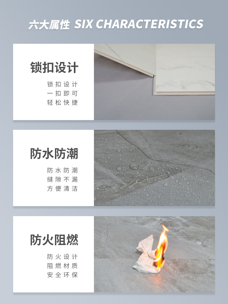 SPC フロアストーンプラスチックロック耐摩耗性増粘難燃性防水石結晶商業外国貿易スナップオンプラスチック床革