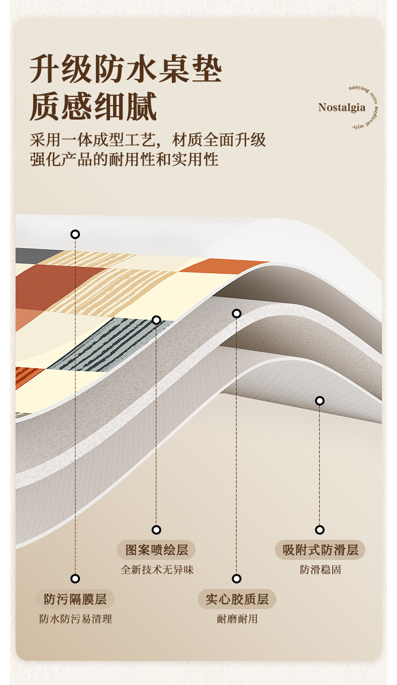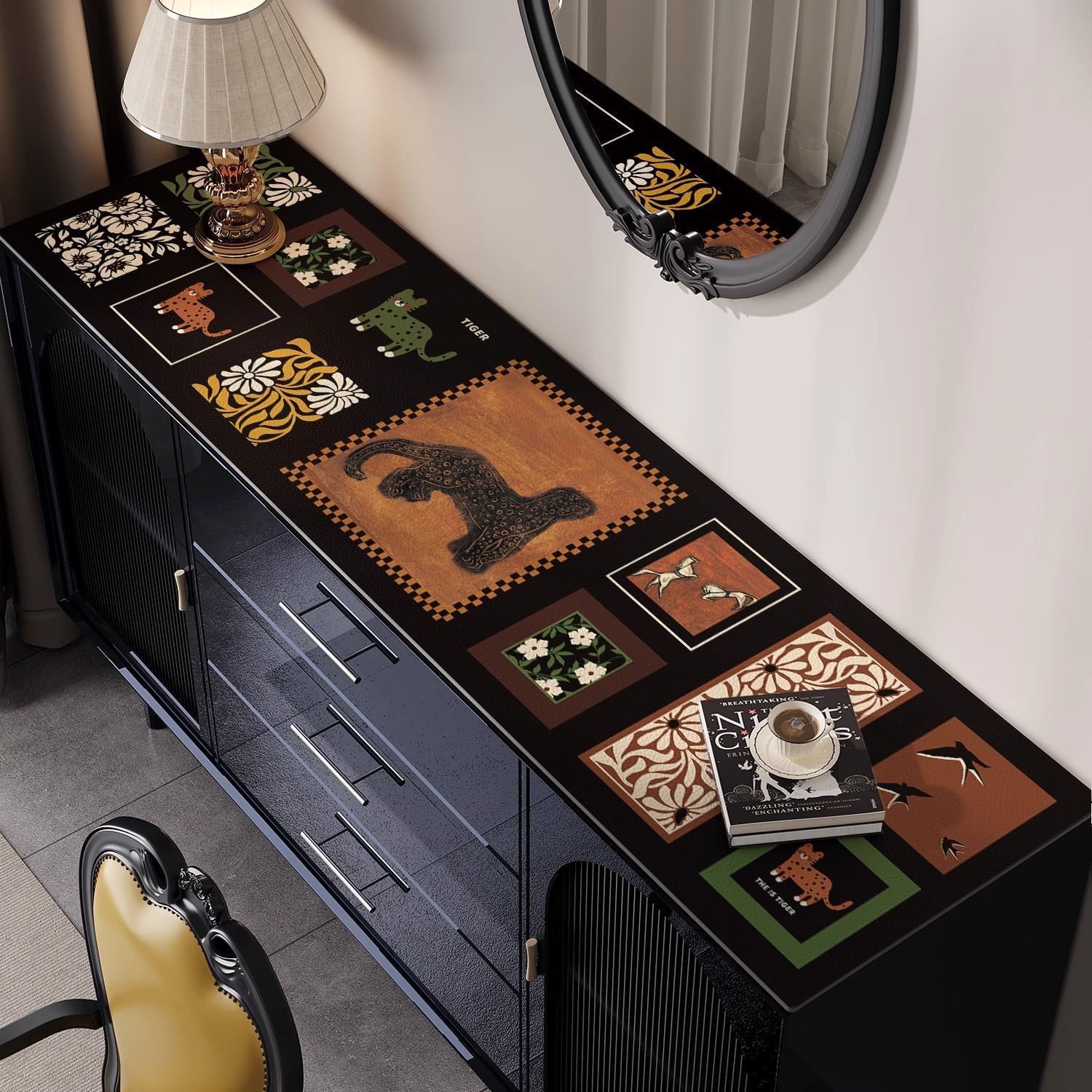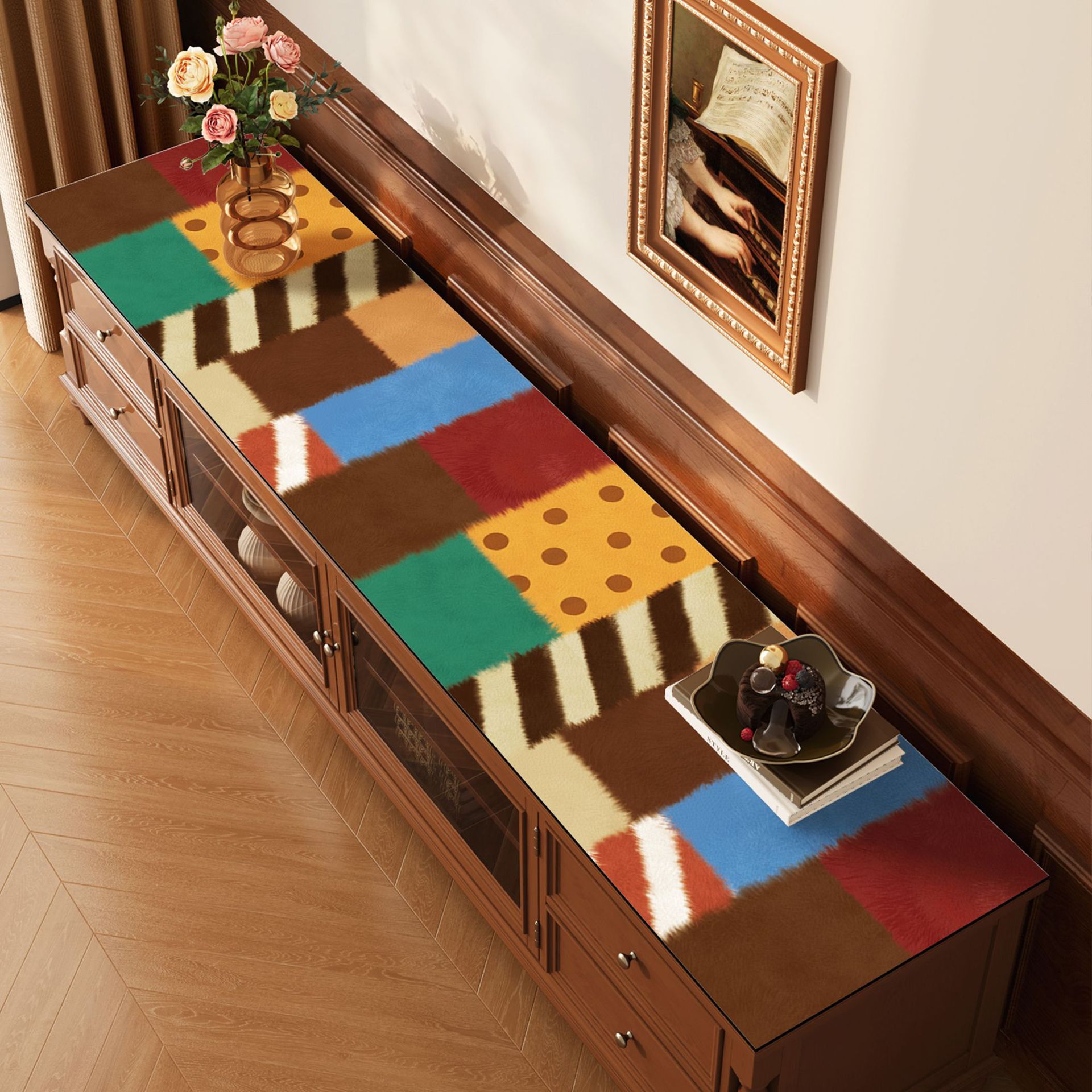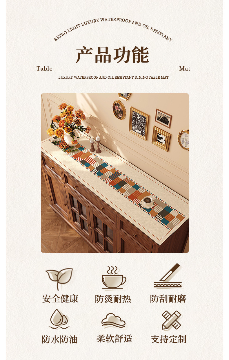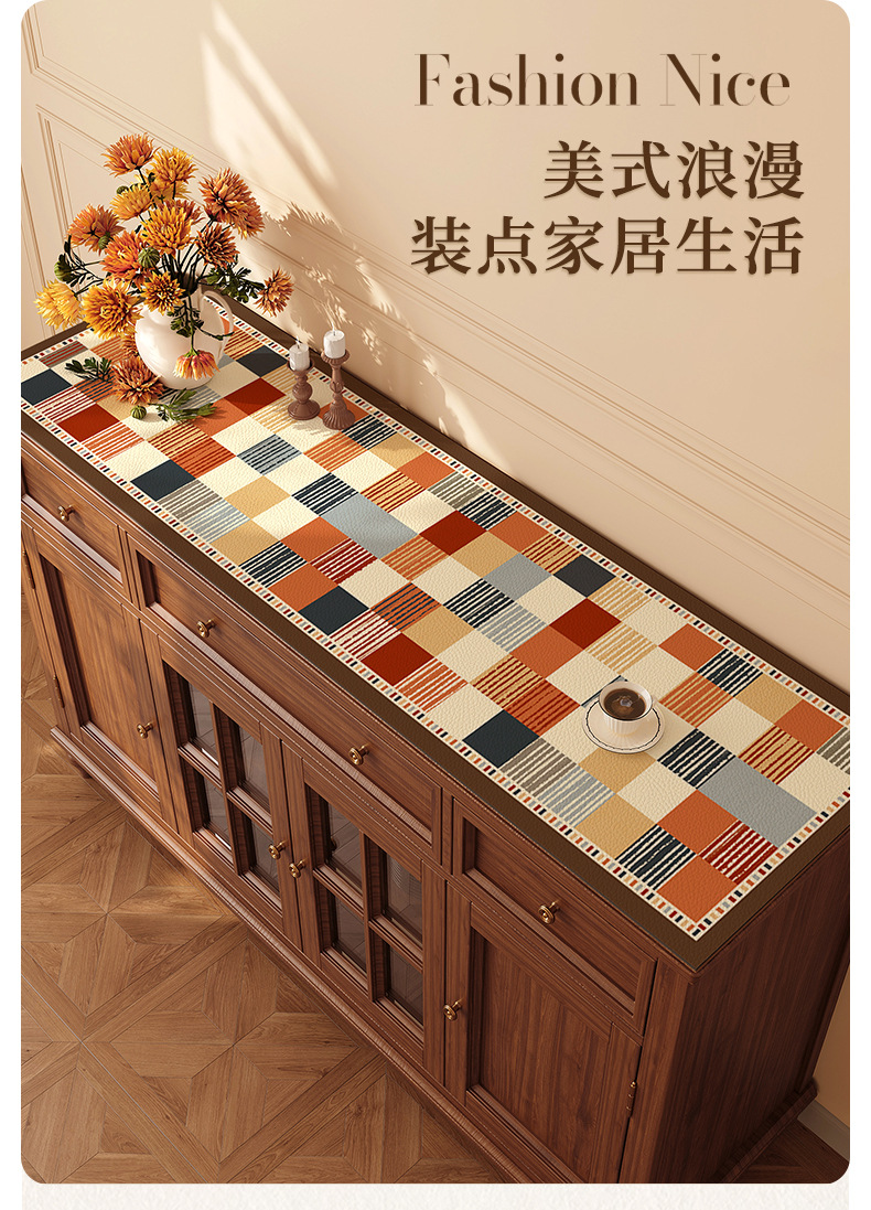 中古风餐边柜桌垫轻奢高级感桌布防水防油免洗电视柜台面保护垫子
