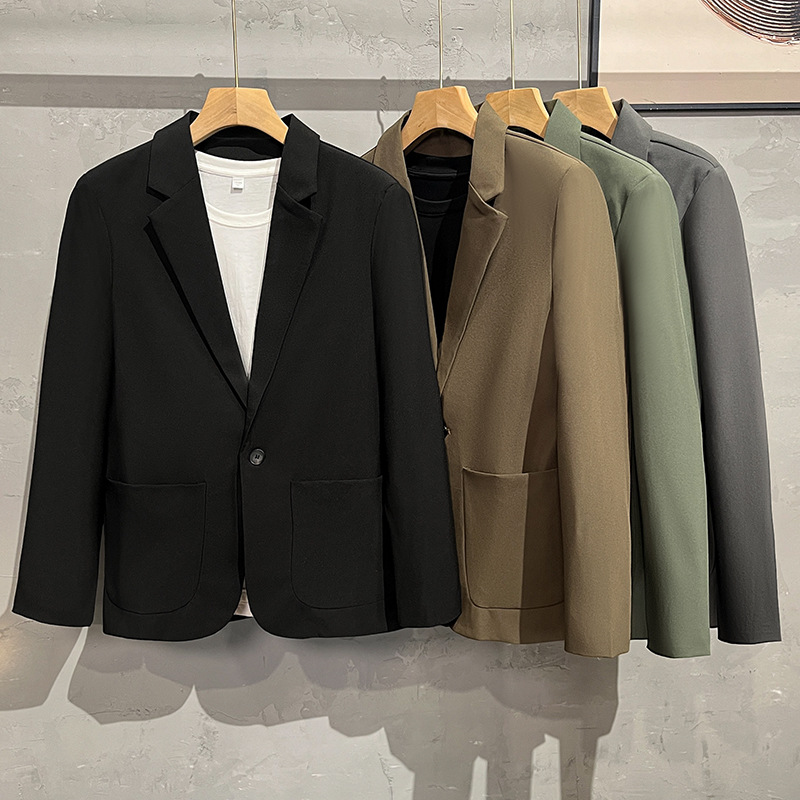 商务通勤黑色西装外套男士休闲抗皱正装西服双排扣垫肩小西服