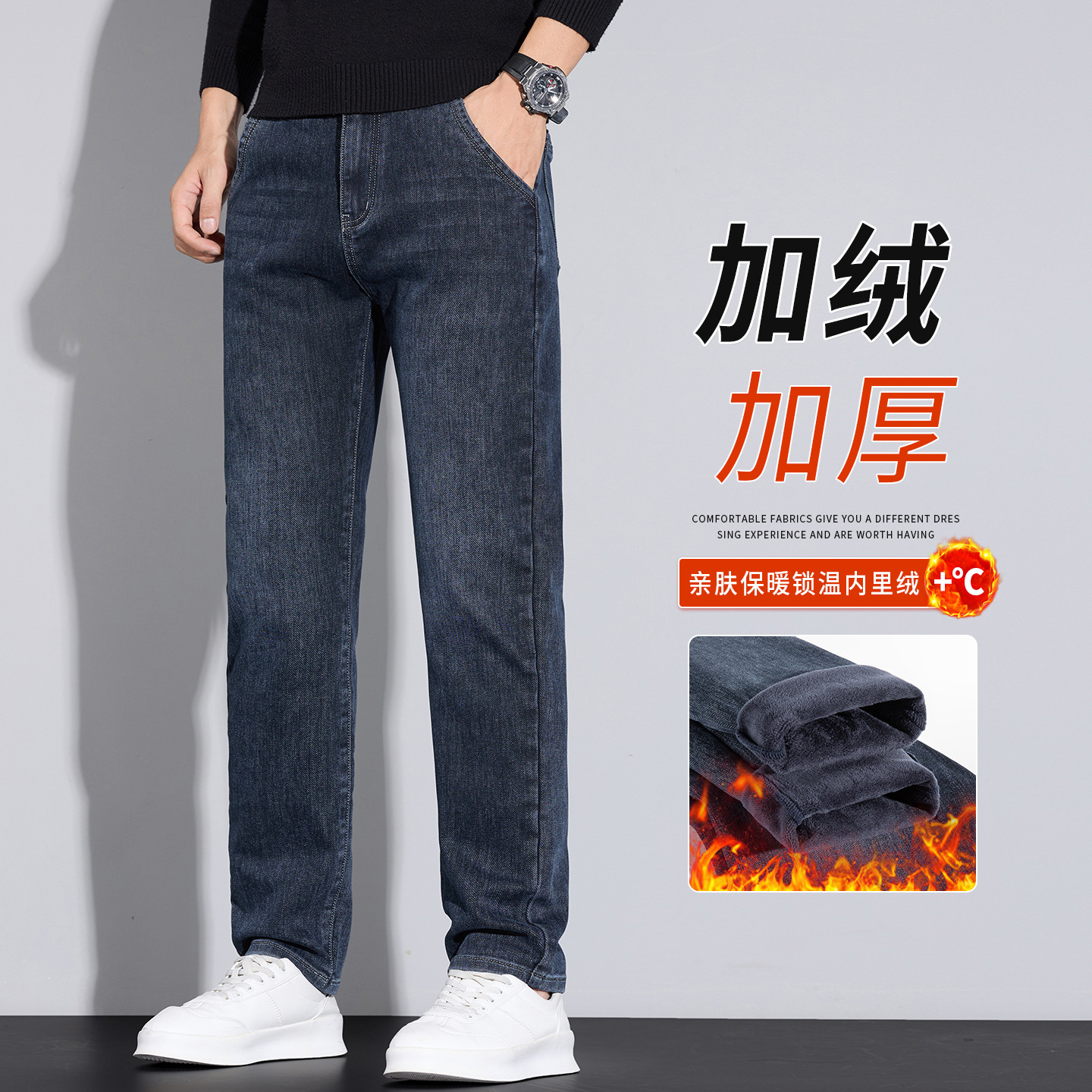 雾霾蓝直筒牛仔裤男士秋冬季2025年新款时尚高端弹力宽松男士裤子