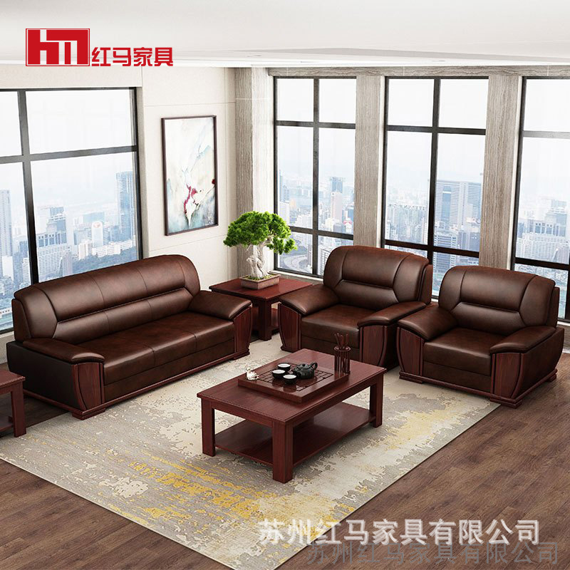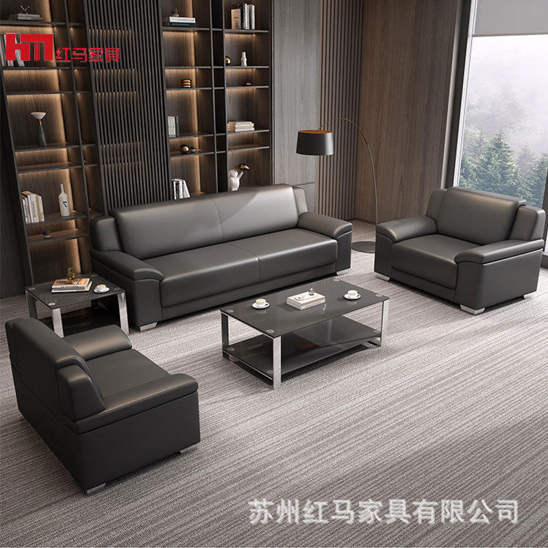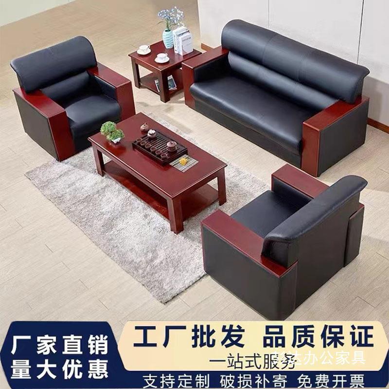 オフィスソファービジネス接客貴賓商談応接区応接室現代シンプル本革ソファーティーセット
