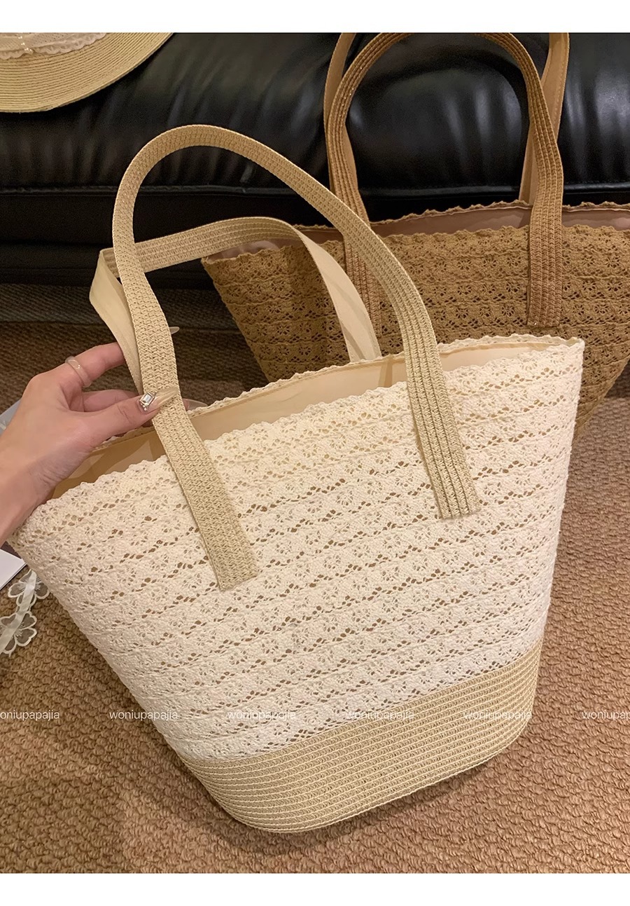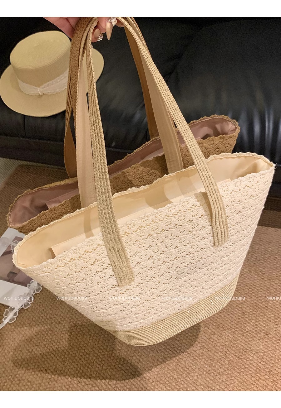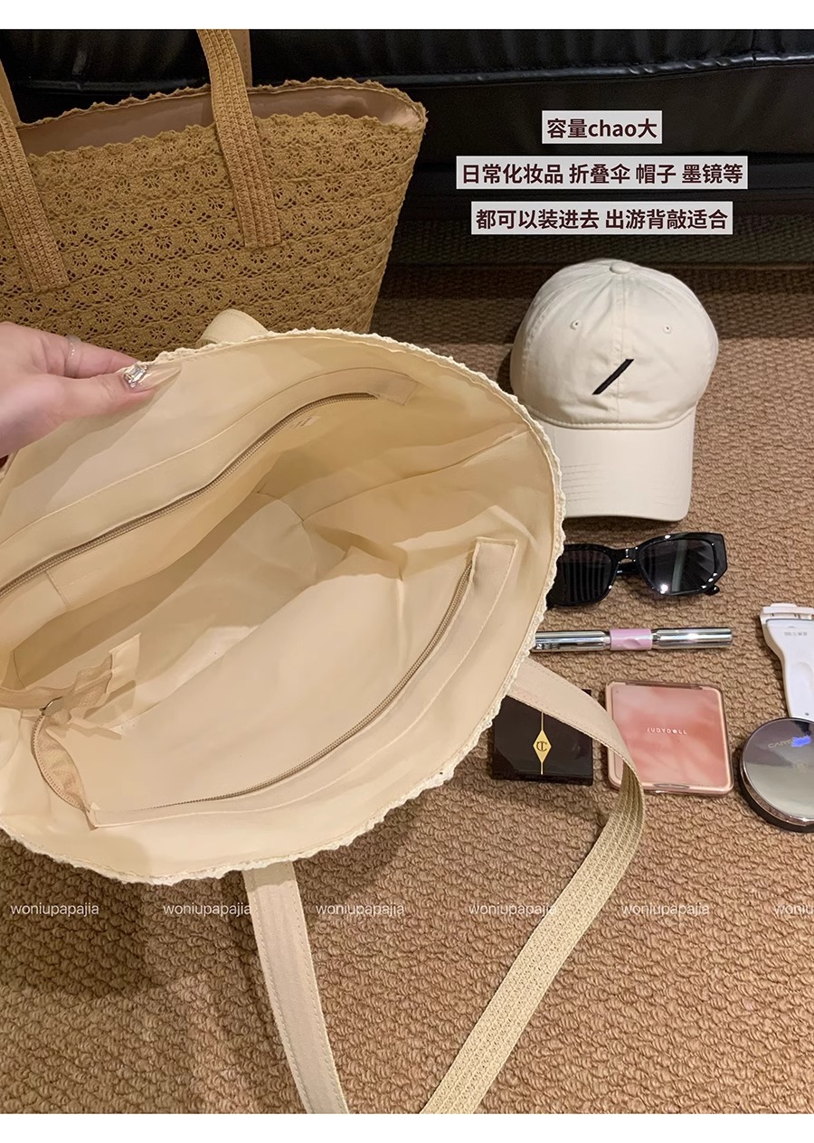 夏旅行大容量織バッグ 2025 新しいカジュアル休暇スタイルビーチバッグ通勤多用途わらバッグ