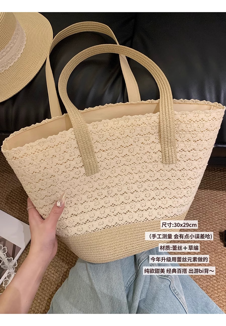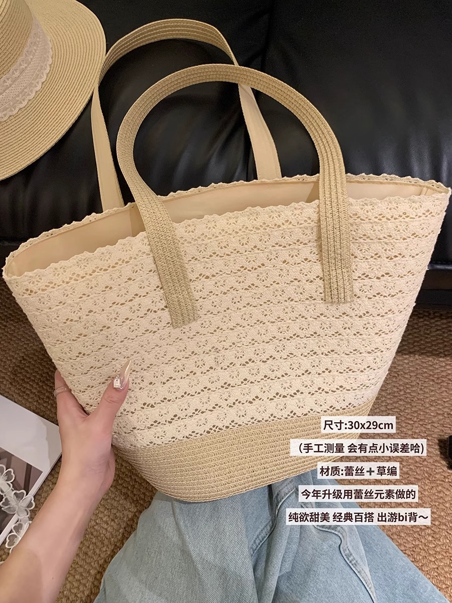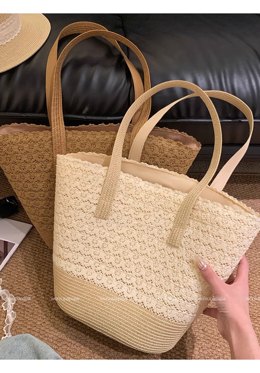 夏旅行大容量織バッグ 2025 新しいカジュアル休暇スタイルビーチバッグ通勤多用途わらバッグ