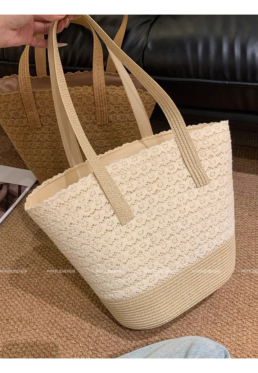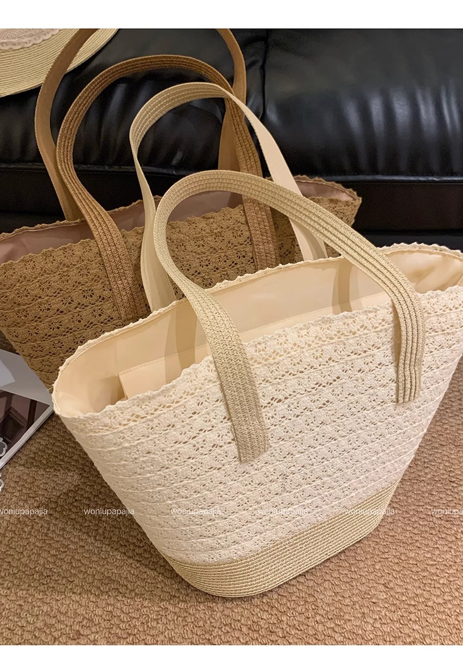 帽子の女性春夏新作草編み百合大容量バッグ夏の高級感通勤バッグ