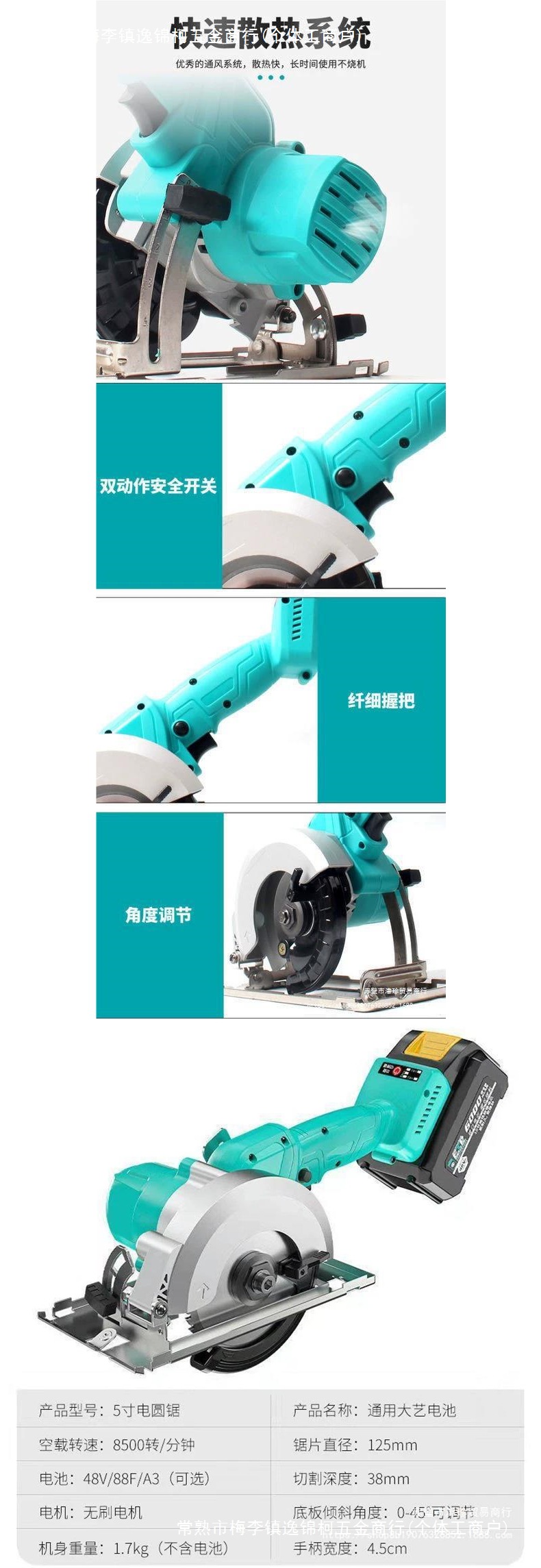 Dayi リチウム電池切断機ブラシレス純銅ムーブメント片手鋸電気丸鋸電動のこぎり大理石マシン 4inch 5inch