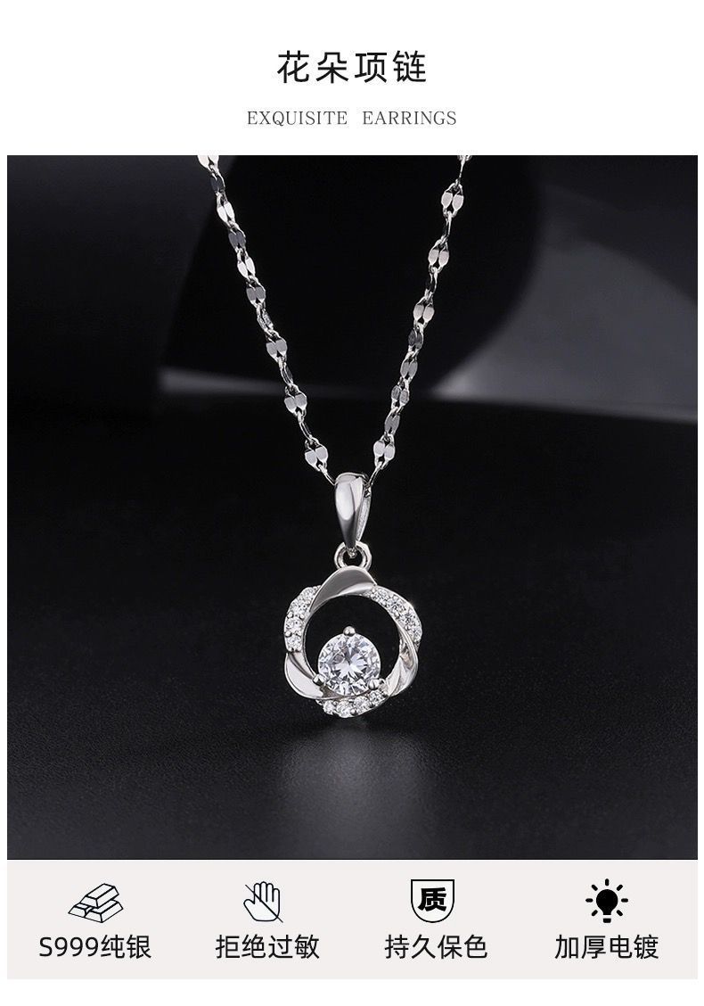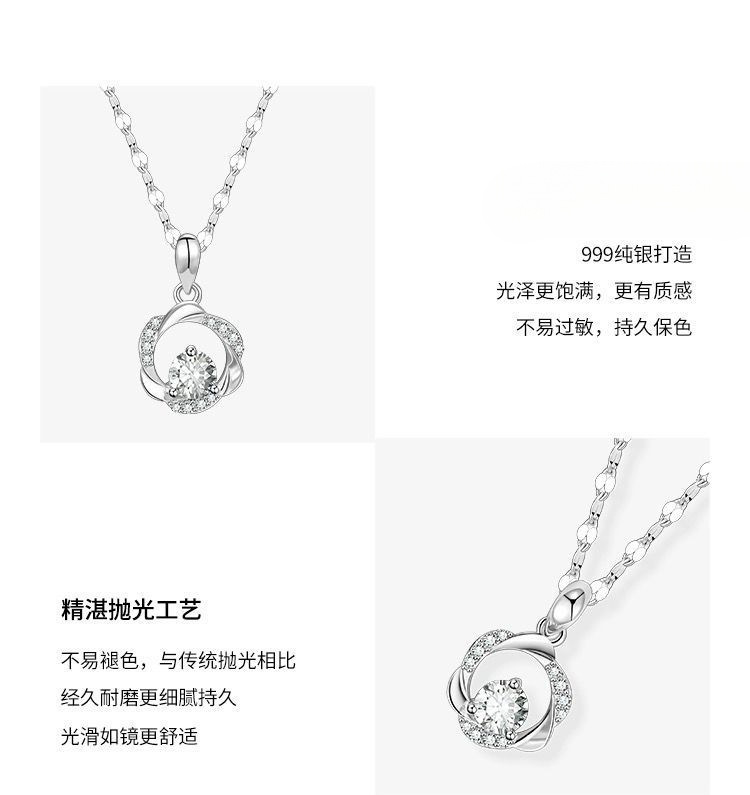 999 純銀メビウスネックレス女性のライト高級ニッチ 2024 新しいハイエンド鎖骨チェーンバレンタインデーギフト